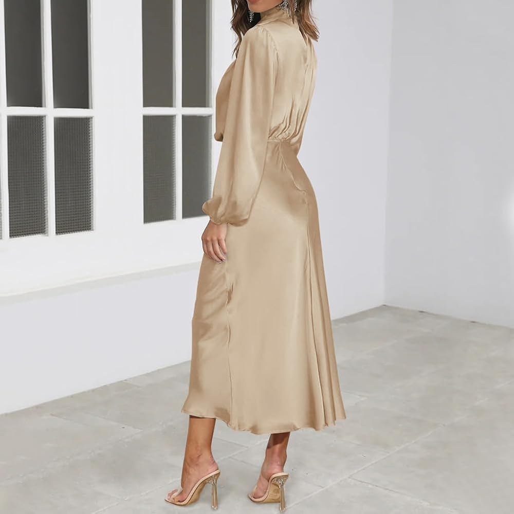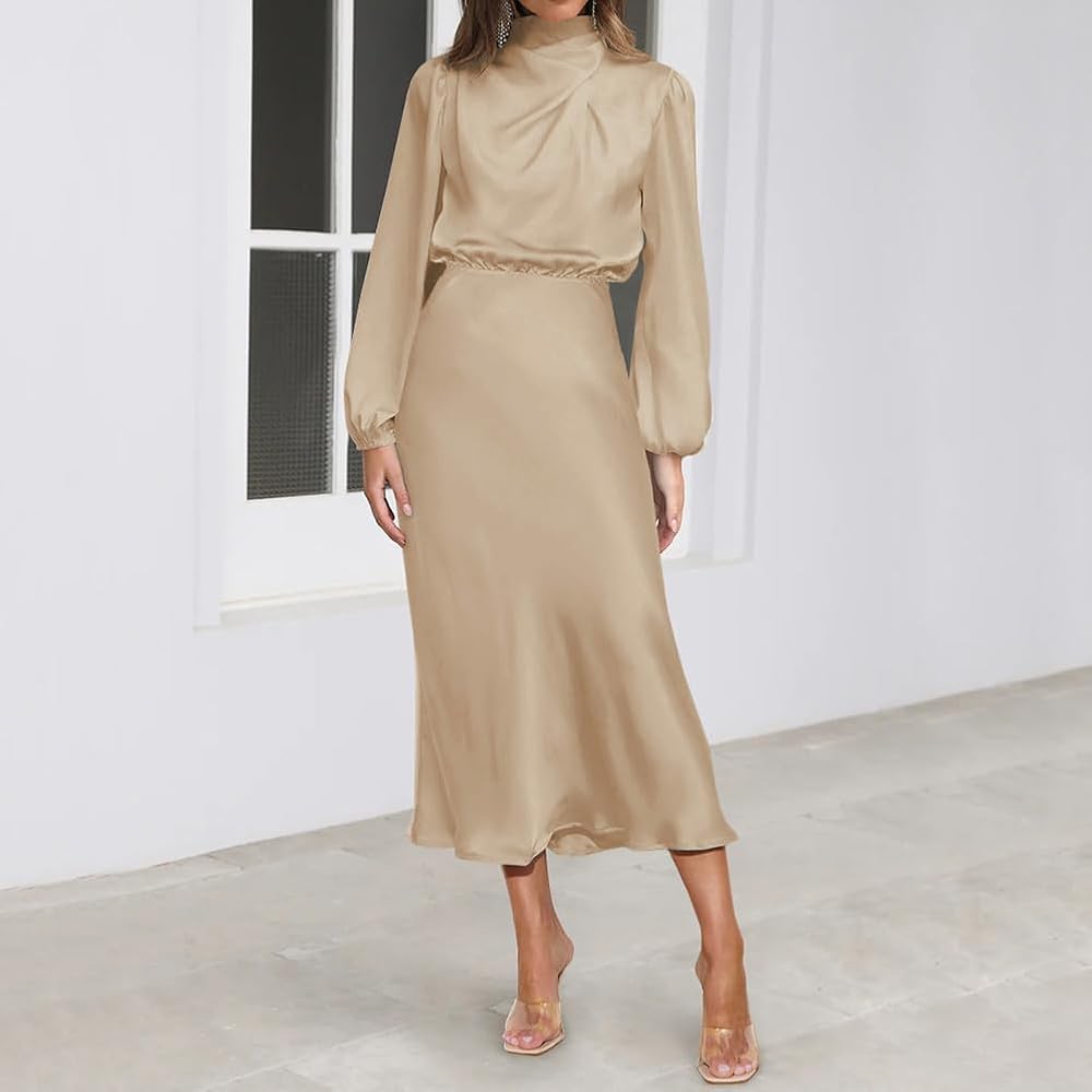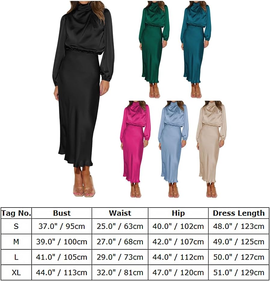Premium Satin Dresses for Women: Made of high quality fabric, our mock neck maxi dresses are breathable and durable. It has a soft touch and is skin-friendly for wearing, giving you a comfortable and long-lasting wearing experience.