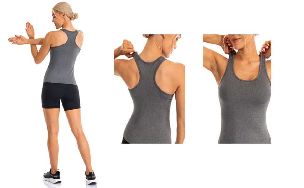 - Features: Racerback, round neckline, flat lock seams to prevent chafing