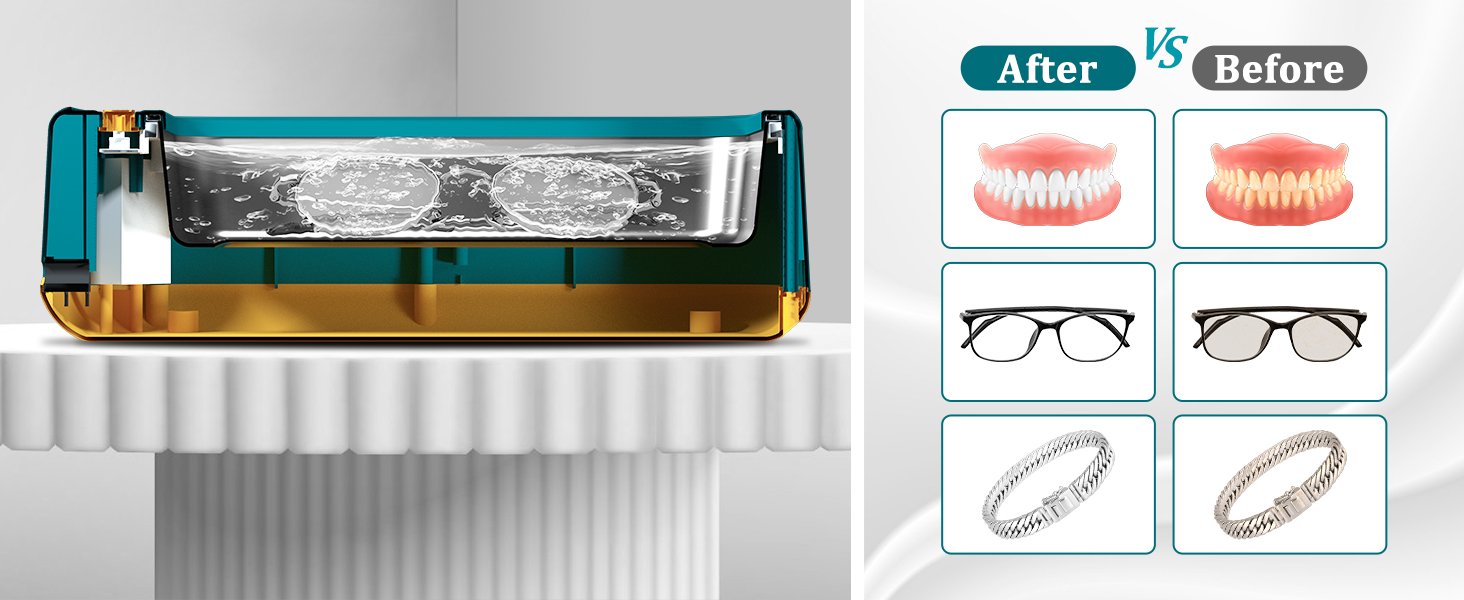 💍Powerful ultrasonic dental cleaner: The jewelry sonic cleaner come with 40W Power, producing 48kHz high frequency sound waves, which this ultrasonic glasses cleaner can achieve 360° full-round and effectively remove mouth guards, dentures, retainers, jewelry, and the dust in the clean blind areas such as gaps and grooves. The ultrasonic tooth cleaner is a good deep cleaning machine for households.(Note: When starting, press the switch first, then close the lid!!!)