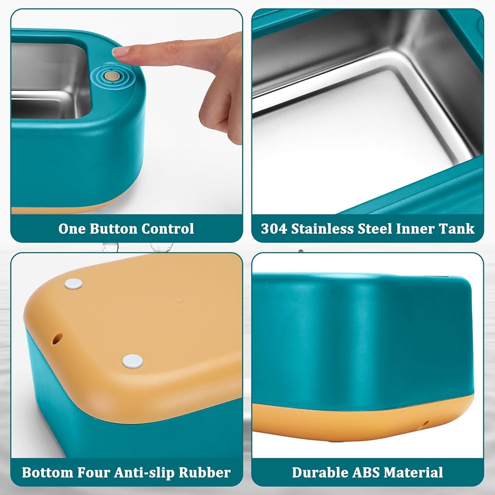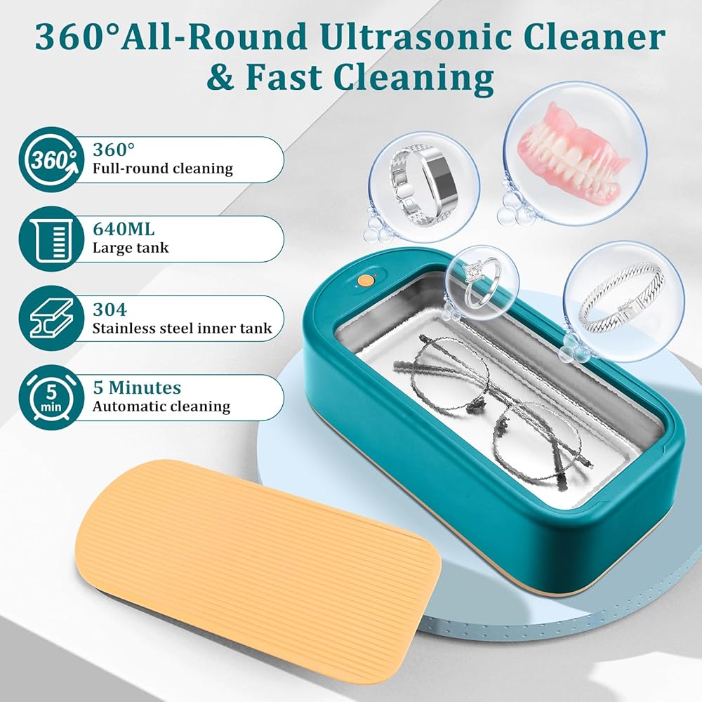 💎 Large Tank & ABS Material: Ultrasonic cleaning machine come with a spacious 640ml large tank capacity, which this ultrasonic cleaner machine is enough to clean denture, earrings, glasses, jewelry, watch straps. The bottom of the ultrasonic cleaner jewelry is equipped with four anti-slip rubber, support to stabilise the ultrasonic cleaner, effectively prevents corrosion of cleaning discs. With 304 stainless steel liner, more durable.