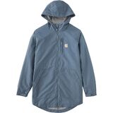 Keep this women's Carhartt coat on hand in case of cool temperatures or light rain. It's made from water-repellent material, with a mesh lining, a three-piece hood, and plenty of pockets. This versatile layer is cut for a long length. Cinch up the drawcord at the waist to adjust the shape.
