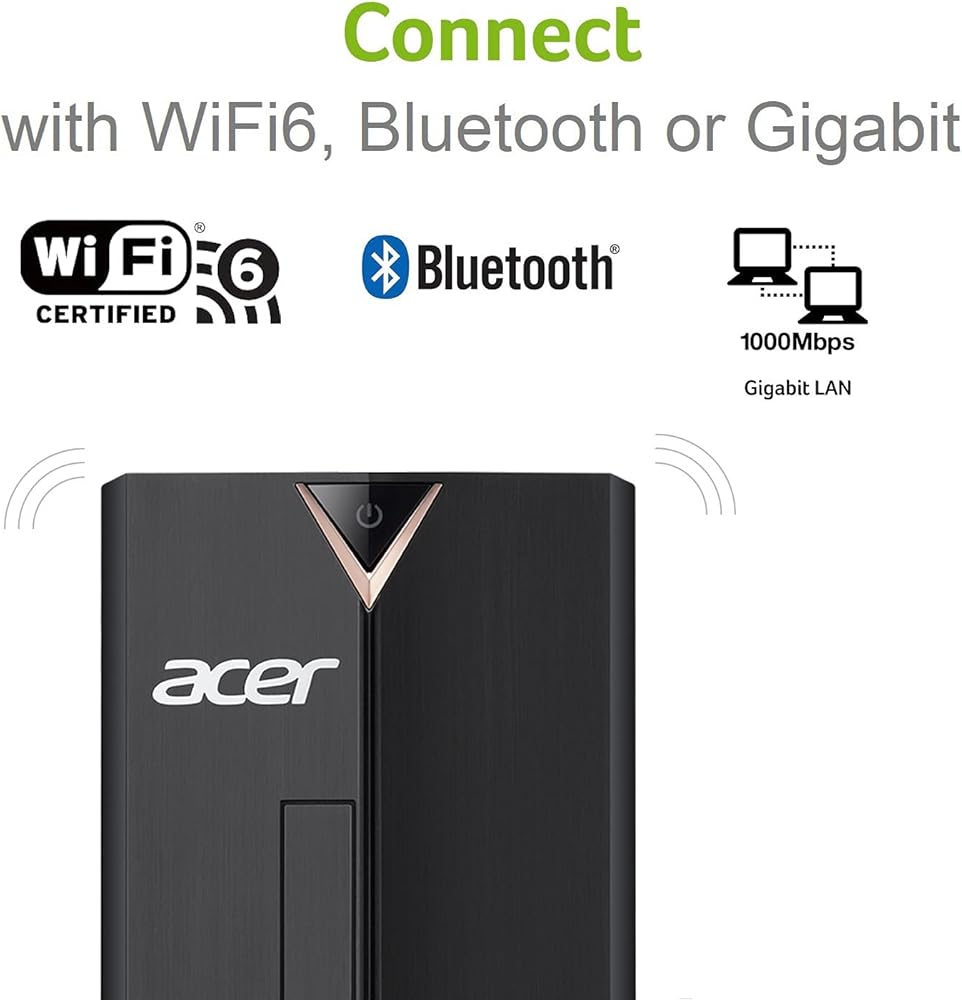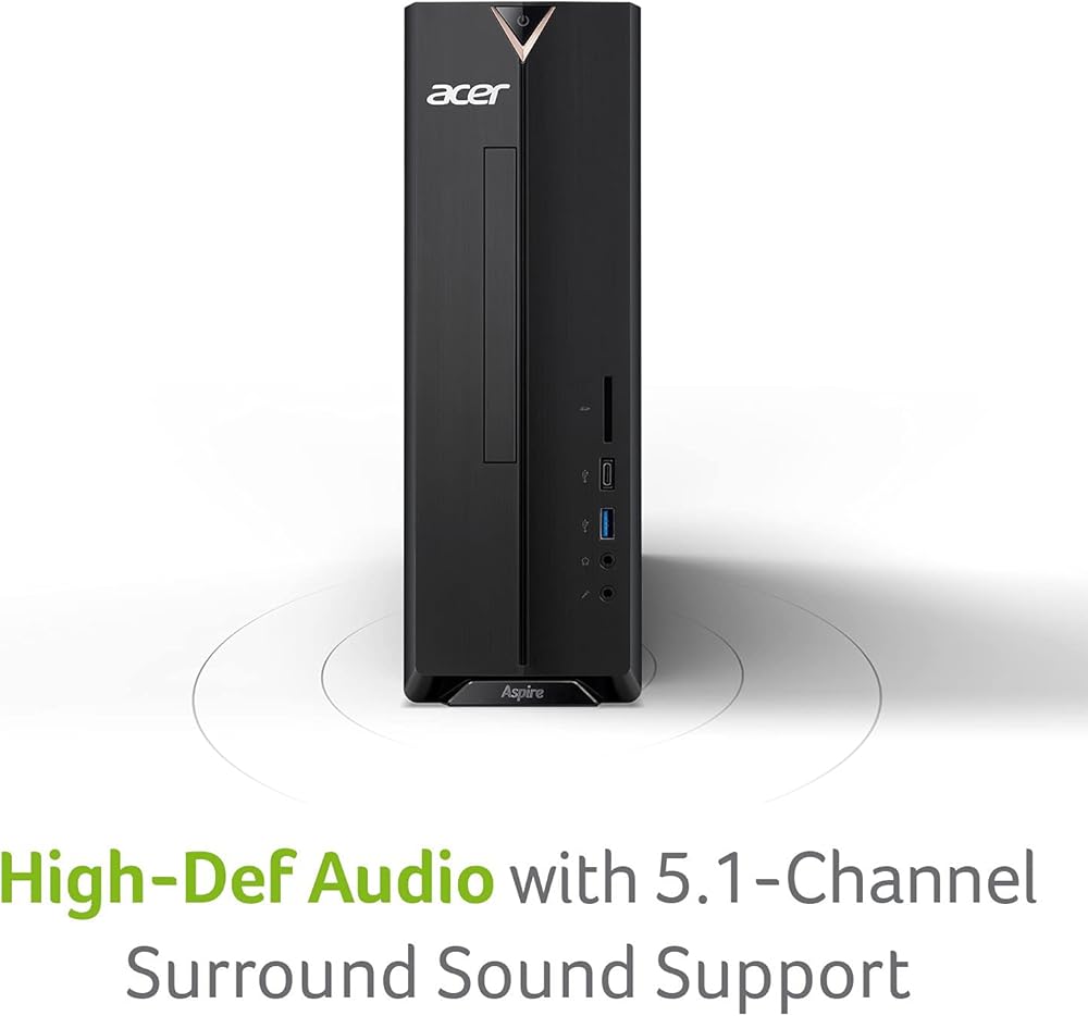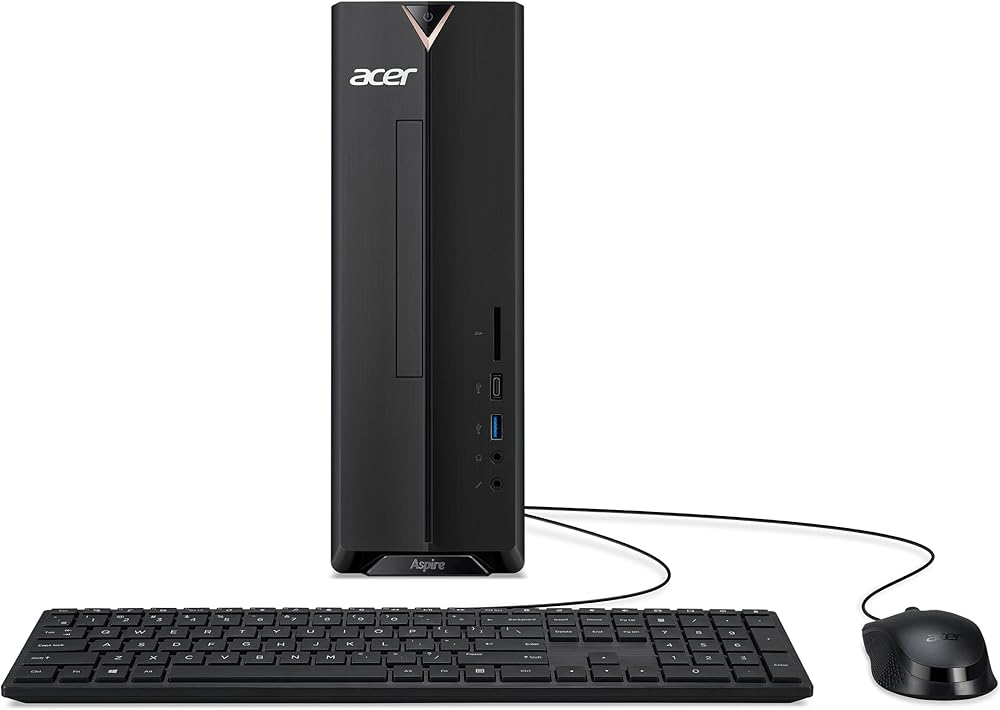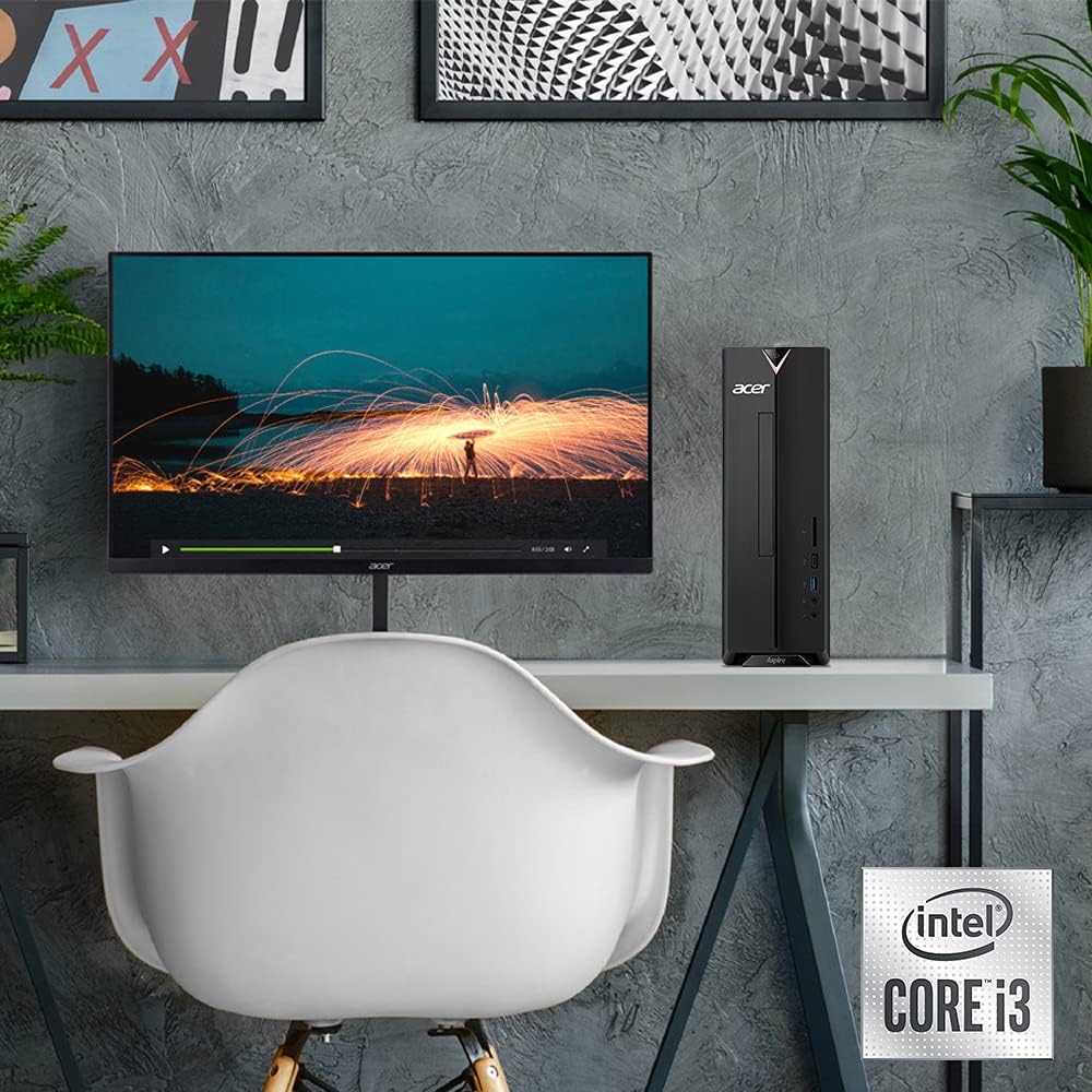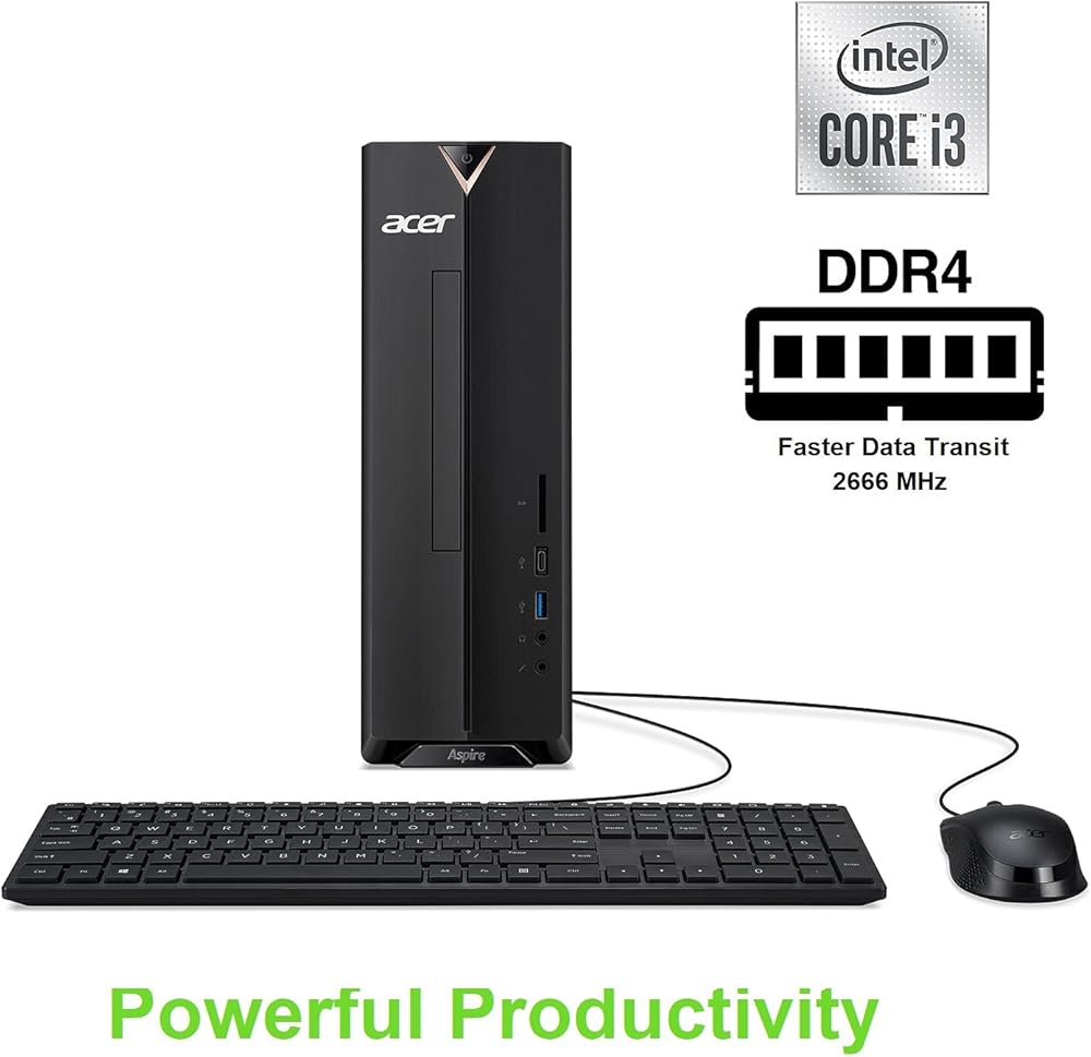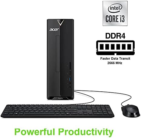 Acer Aspire XC-895-UR11 Desktop PC comes with these specs: 10th Generation Intel Core i3-10100 Processor 3.6GHz with Turbo Boost 2.0 Technology up to 4.3GHz, Windows 10 Home, 8GB DDR4 2666MHz RAM Memory, Intel UHD Graphics 630, 8x DVD Writer Double Layer Drive (DVD-RW), 1TB 7200RPM Hard Drive, High Def Audio with 5.1-Channel Surround Sound Support, 1 - USB 3.2 Type C Gen 1 port (up to 5 Gbps) (Front), 5 - USB 3.2 Gen 1 Ports (1 Front and 4 Rear), 2 - USB 2.0 Ports (Rear), 2 - HDMI Ports (Rear), 2 - HDMI ports (Rear), Intel Wireless Wi-Fi 6 AX200 802.11ax Dual-Band 2.4GHz and 5GHz featuring 2x2 MU-MIMO technology , 10/100/1000 Gigabit Ethernet LAN (RJ 45 port), Bluetooth 5.1, 300W power supply, USB Keyboard and Mouse, 11.86 lbs. | 5.38 kg (system unit only). BGNAA.001)
