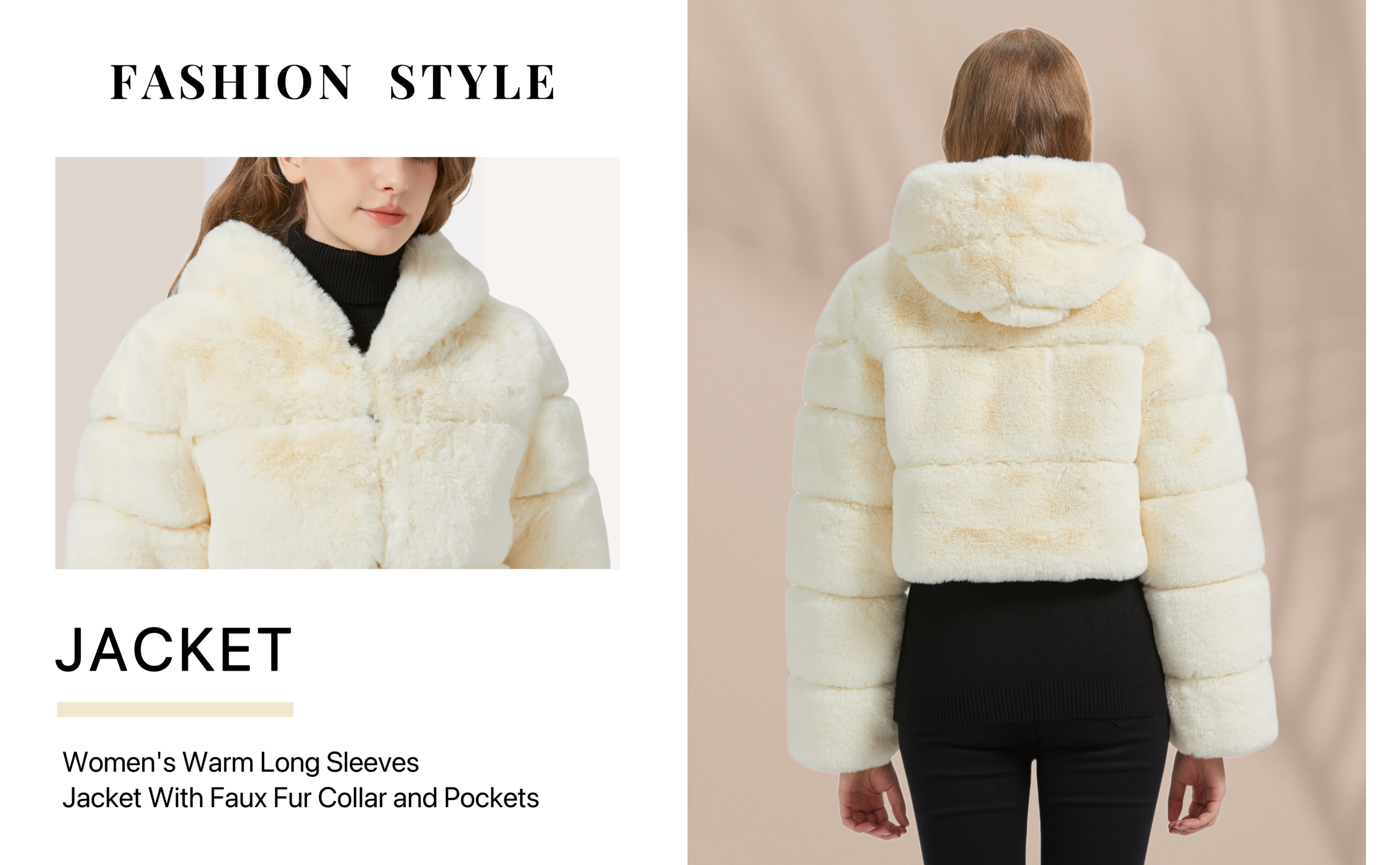 BASIC FEATURES: Faux jacket for women, women winter jacket, faux fur lining and collar, front zip closure, long sleeves, adjustable waist, V-neck hooded. Suit for valentine's day gift, daily wear, school, vacation, work, club, party, street, great for Office or Sport Outdoor.