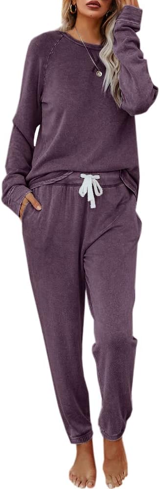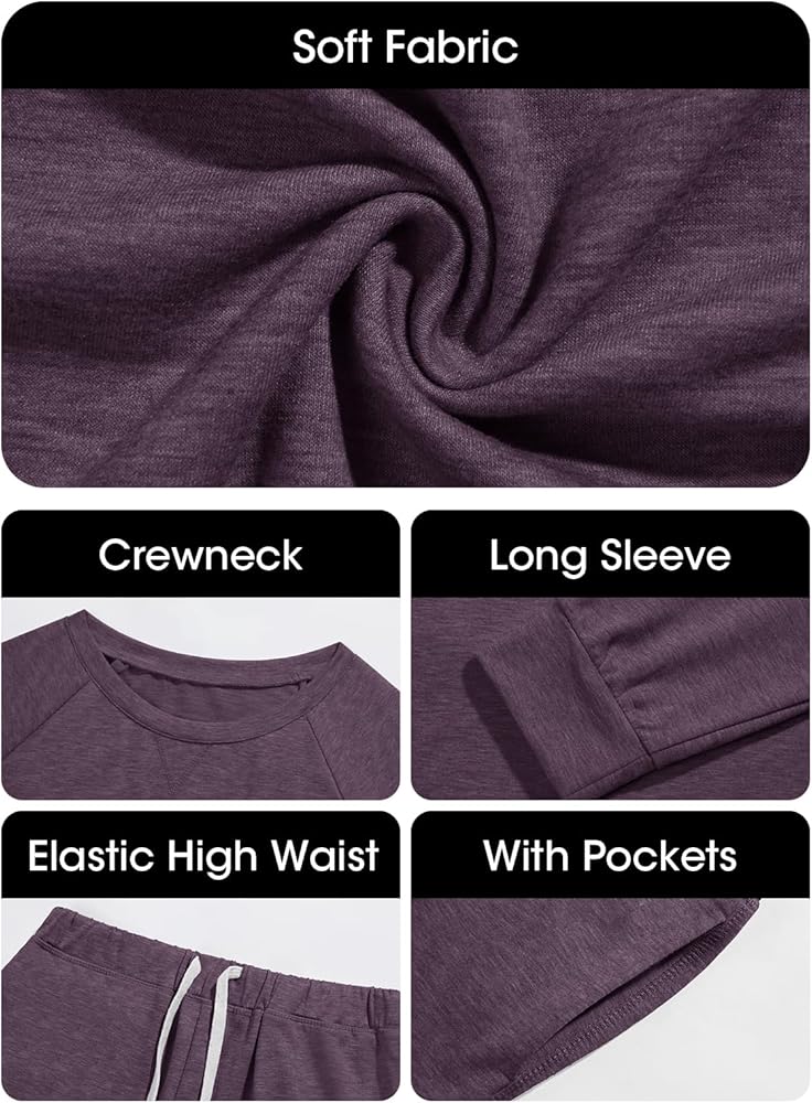 Features: Letter printed, printed graphic, long sleeves, crewneck pullover top, joggers pants with adjustable drawstring, solid color, relaxed fit style, womens 2 piece loungewear set