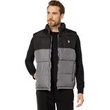 Designed to layer over a T-shirt or full-sleeved shirt, the U.S. POLO ASSN. Color-Block Puffer Vest has a colorblock design. Standing collar and sleeveless style. Zippered front closure. Signature brand detailing on the chest. Two side pockets. Straight hemline. Main body and lining: 100% polyester;Shell: 100% polyester;Fill: 100% polyester. Machine wash, tumble dry.