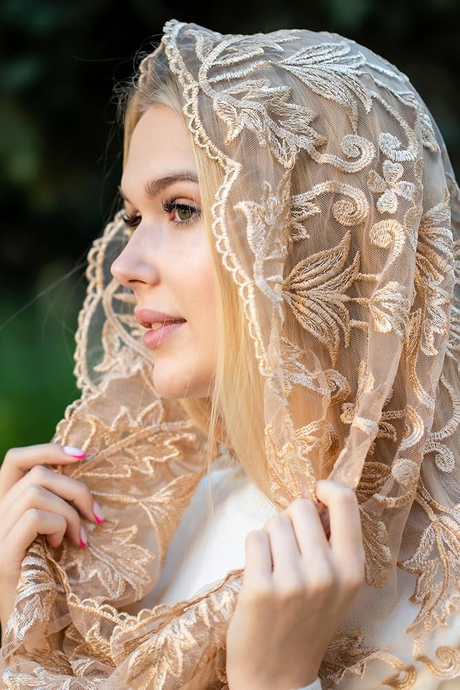 MARIA VEILS FEATURES - Infused with love and deep faith, our mantilla veils for women stand out for their superior quality, offering a vast selection of embroidery styles and color palettes. Every chapel veil is meticulously crafted in Europe.