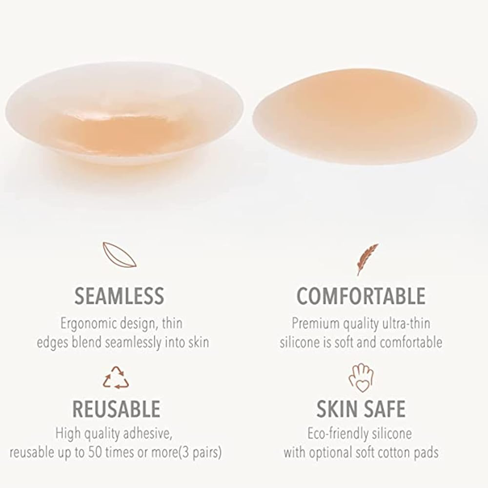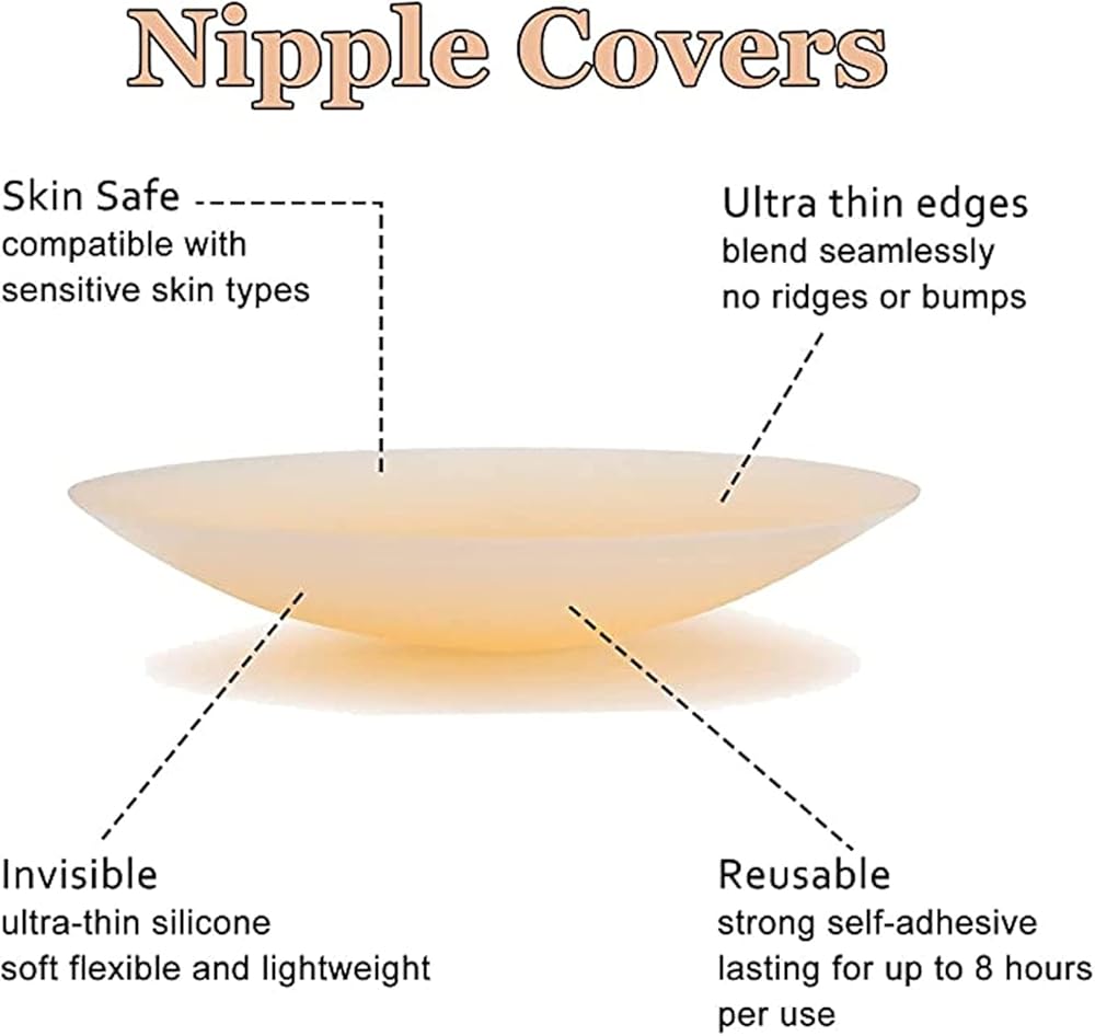 Say goodbye to strapless bras and hello to easy-to-use, reusable nipple covers. Follow instructions for removal and keep for future use.