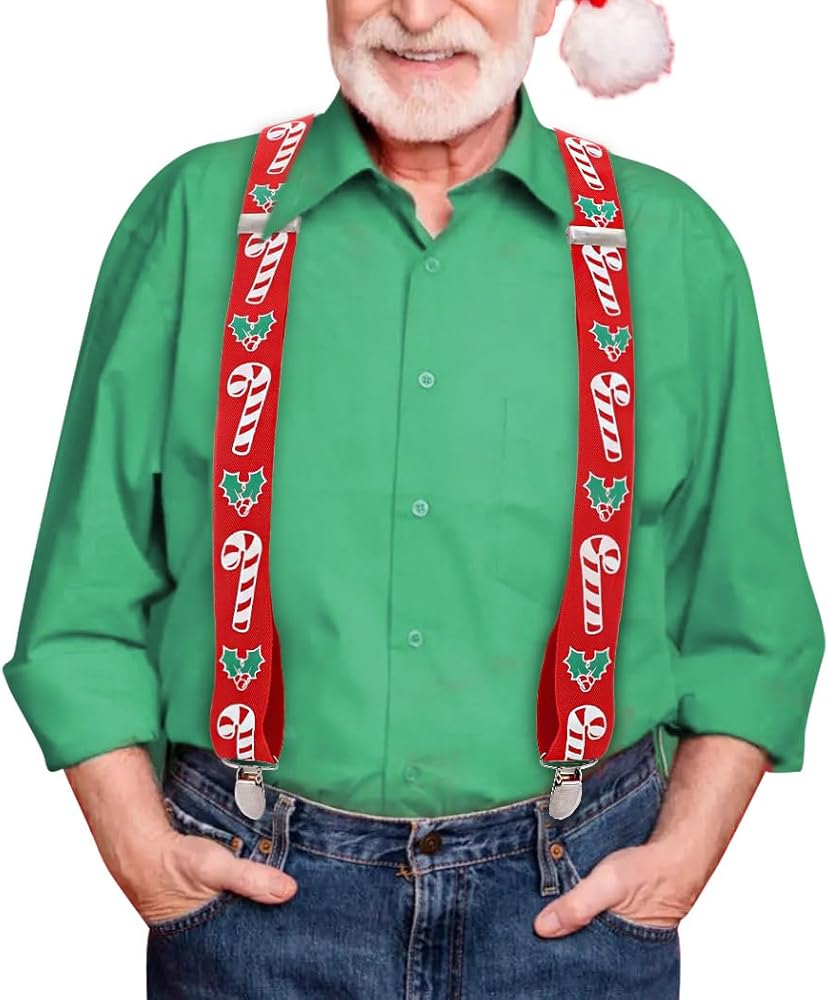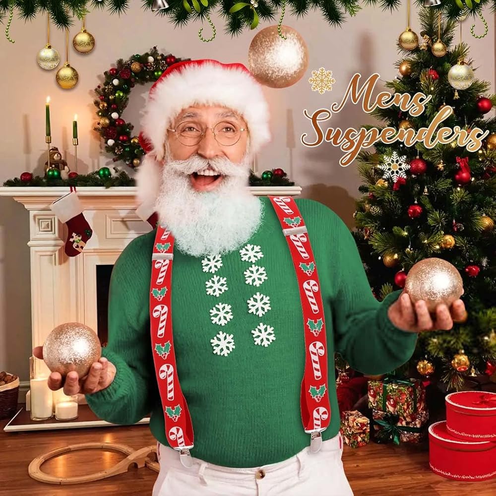 Xmas suspenders is made of high quality elastic band and alloy,which is soft, durable,adjustable and easy to wear. Mens suspenders fitted with a sturdy metal clip that can firmly hold your pants, making it easy for you to work all day long