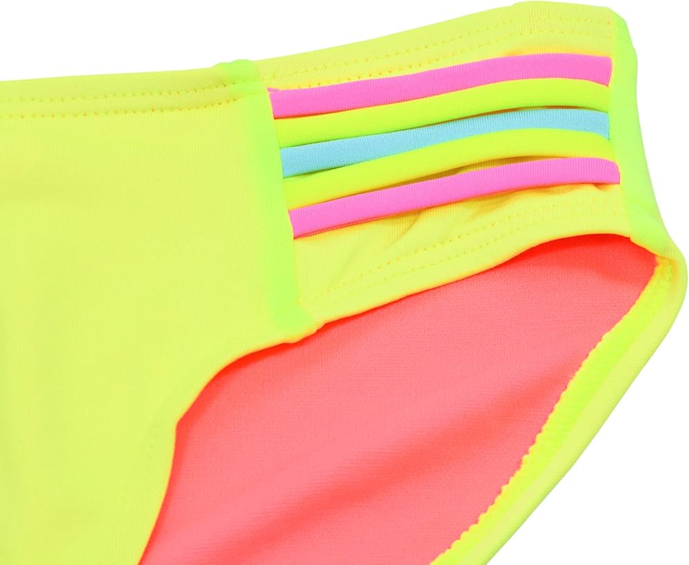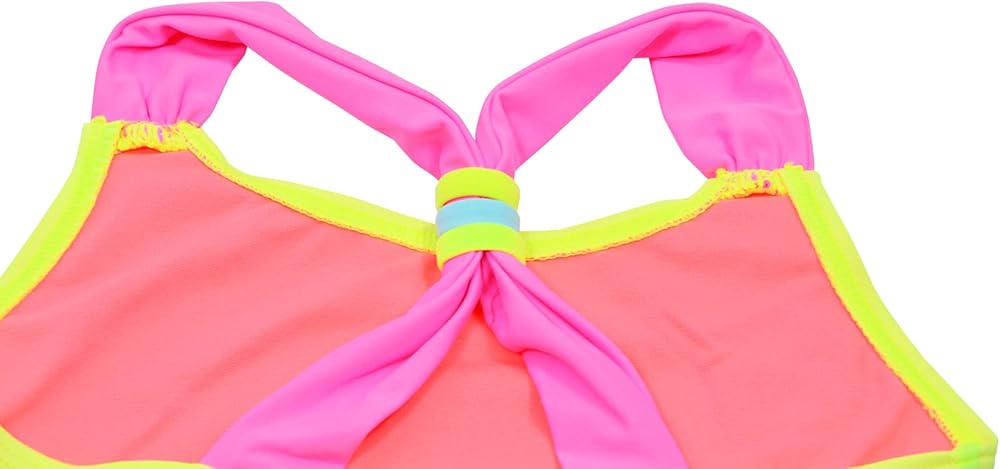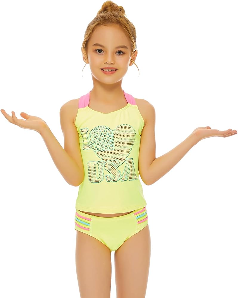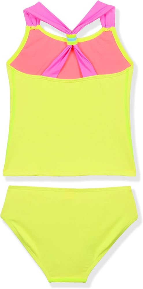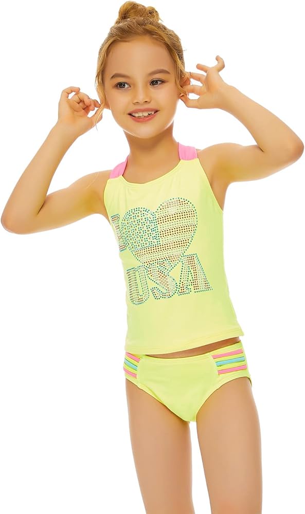 Convenient&Unique Design:Racerback Top Design, Fit Your Girls Better. Move more freely. The Side of Solid Bottom with Colorful Stripes Made The Tankini Swimsuit Look More Lively.