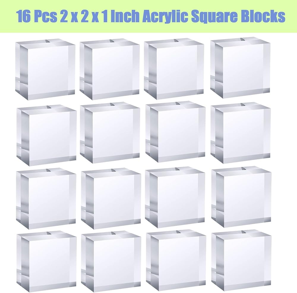 16 Pieces Clear Polished Acrylic Cube 2 x 2 x 1 Inches Acrylic Square Display Block