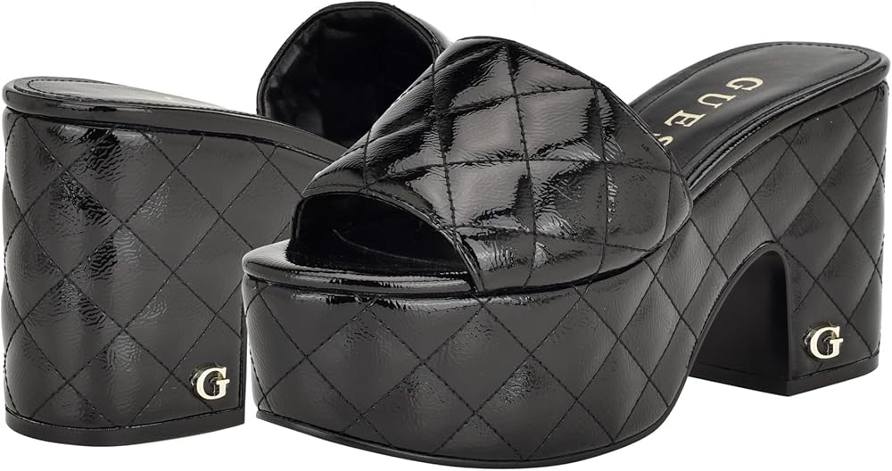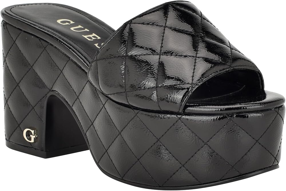 You'll be feeling trendy in the GUESS Yanni platform sandal. The quilted texture design and chunky platform creates a modern dimension on retro inspired style.