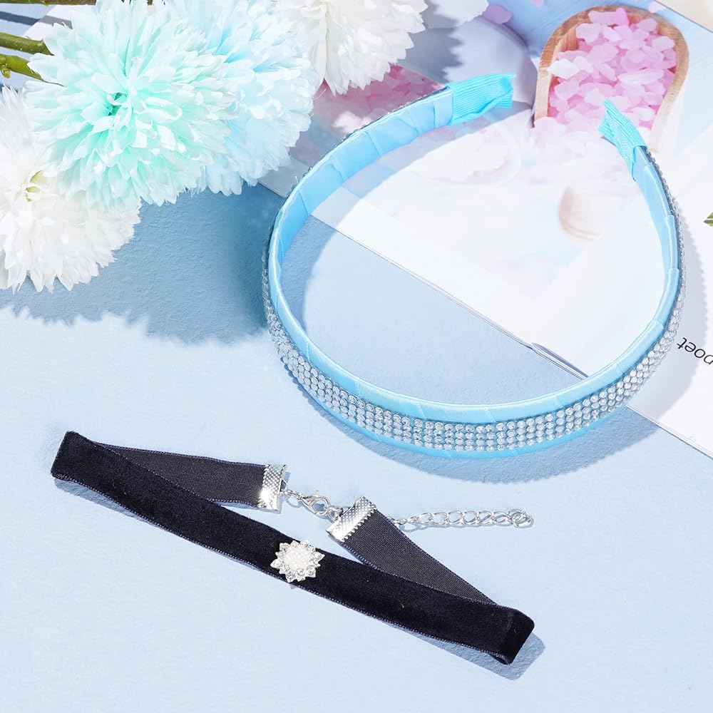 Material: The girls princess headband choker set is made of velvet, metal, plastic, fabric, pearls and rhinestones. handmade and flexible, shining and sparkly, elegant and comfortable to wear. Perfect princess costume party favor for women girls.