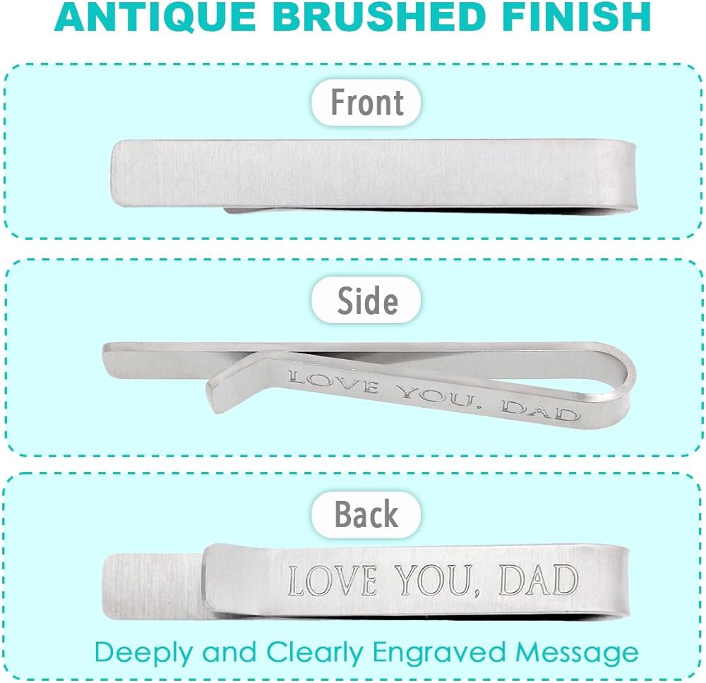 kilofly Men's Hidden Message "WORLD'S BEST DAD" Engraved Luxury Tie Bar 2 Inch Silver is made of 100% stainless steel with vintage brushed silver finish. The engraved hidden message ¡°WORLD'S BEST DAD" is on the reverse. The front appearance is just a plain brushed silver fashion slide tie bar.
