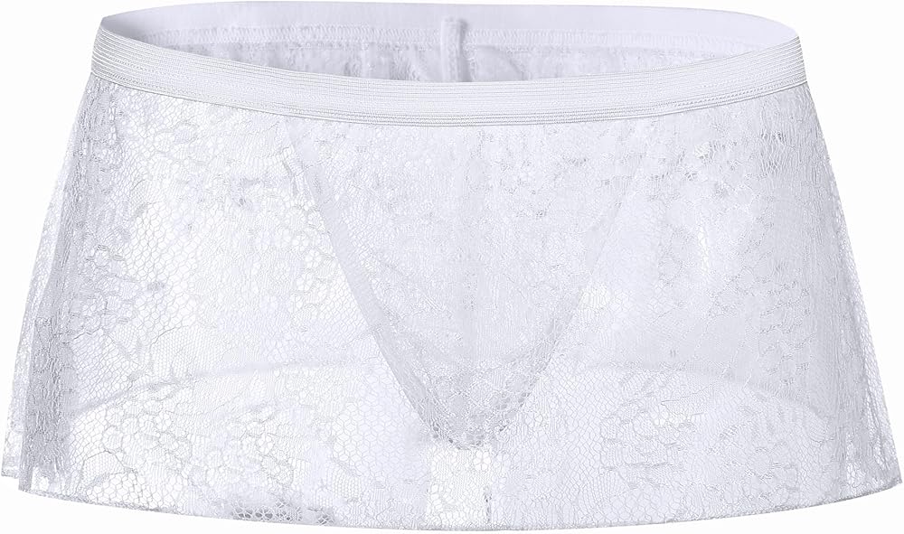【 Occasions】This men's sissy mini sheer lace skirt is suitable for club party, night lingerie , swimming, holiday, crossdresser party, bachelorette party,or daily night wear.