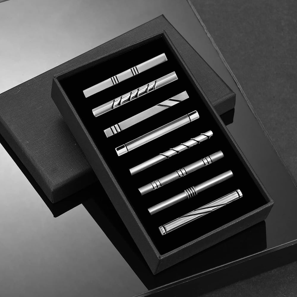 Are you looking for an attractive accessory to complete your new business or formal outfit? Do you need a way to secure you neckties so they do not expose your buttons or fall in your drink? wynameleri Men's Fashion Tie Bar Clips, Not Only Can Improve The Grade of The Man, More Can Reflect The Modern Fashionable Breath. Color: Black, Silver, Gold Size - Length: 2.2 Inches Long and 0.2 Inches Wide- Ideal of Slim, Moderately Skinny and Narrow Size Ties. Presented in a Gift Box: Your Tie Clip Arrives in a Gift Box for a Perfect Presentation or as Storage of your Tie Clips, Cufflinks Etc. Top Quality Clasp: New and Improved Sturdy and Solid Clamp Ensures Your Favorite Tie Will Not Move Throughout Your Busy Day. How to Wear a Tie Clip: The Tie Bar or Tie Clip Should be Worn Between the 3rd and 4th Buttons on Your Dress Shirt for a Sharp Look. Top Quality Clasp! Our clips firmly grip onto your tie and shirt for a completely nonslip hold. When removed, the clip leaves absolutely no evidence of ever touching your delicate fabrics. Maintain a sharp and competent image throughout the day! NOT ONLY A BUSINESS MATTER! While our clips will give you a classy and stylish look at the office, they are also excellent additions to any event involving a tie. Impress guest and friends at your next wedding, prom, elegant dinner, ballroom party, or any event requiring a formal dress code! FIRM AND DURABLE MATERIALS YOU CAN DEPEND ON! We are only interested in crafting the finest products for the buyer with the highest standards. Our reliable metal tie clips are no exception!