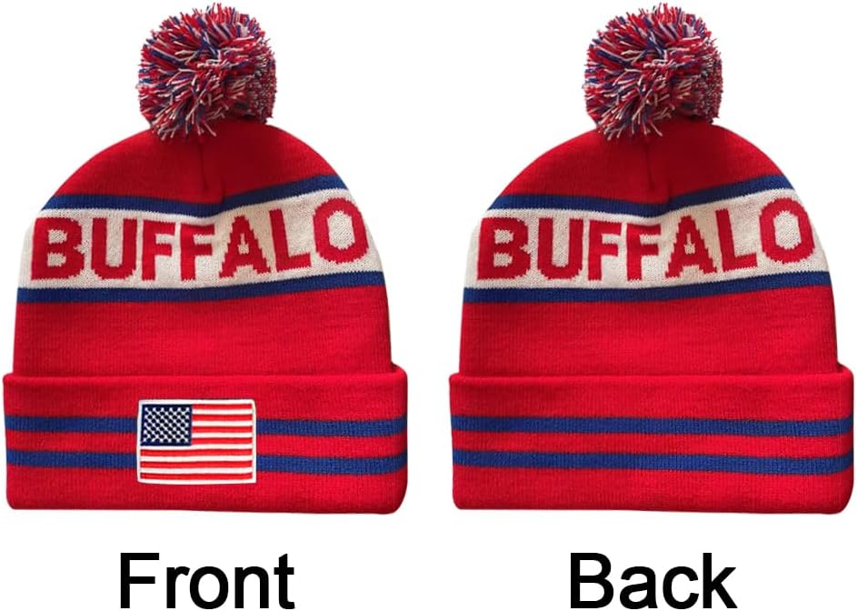 Dutern US Flag Buffalo City Football Embroidery Classic Pom Cuff Buffalo Beanie Hat Cuffed Winter Hat Knit Toque Skull Cap Red