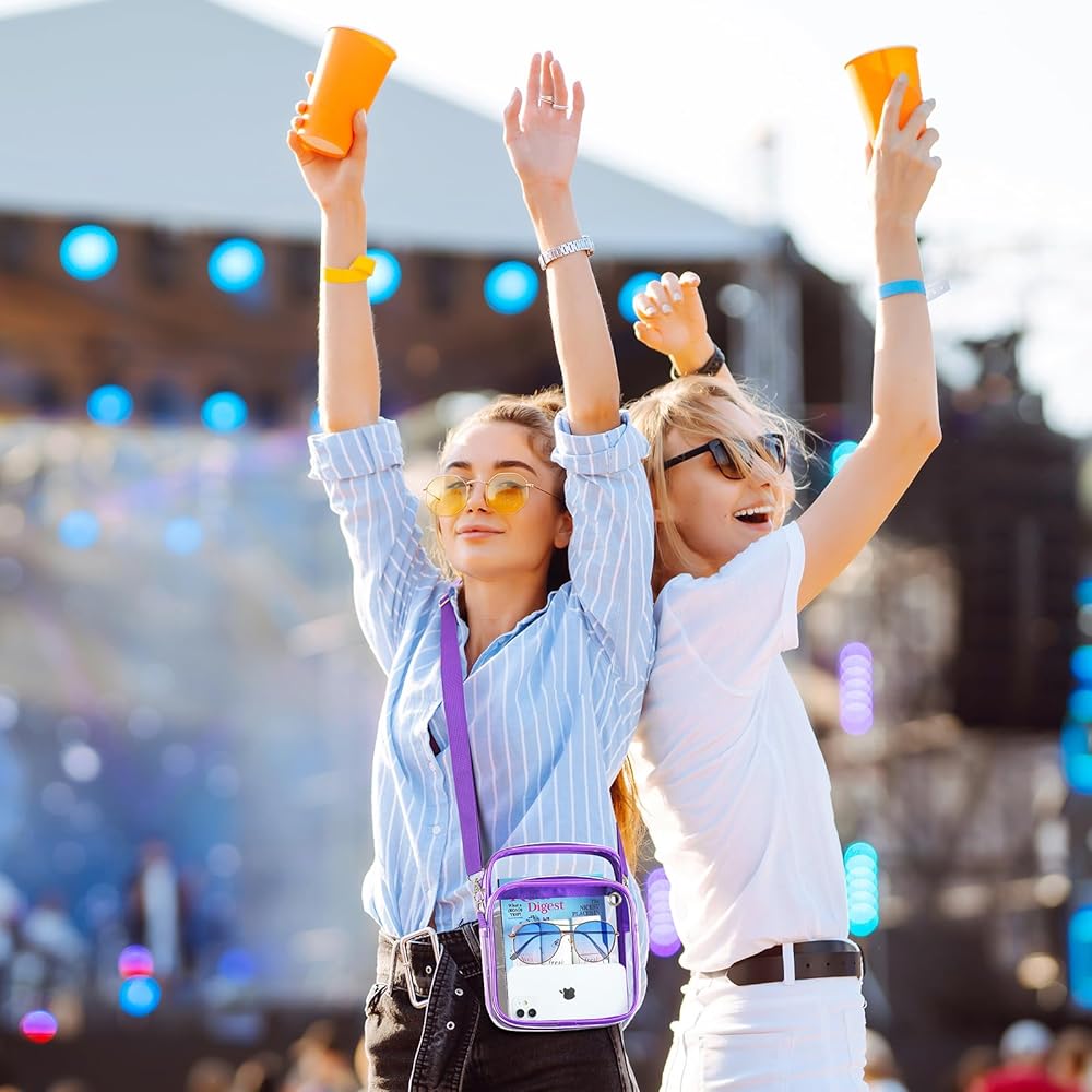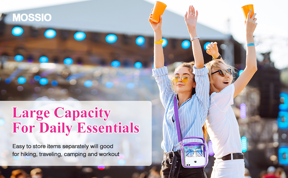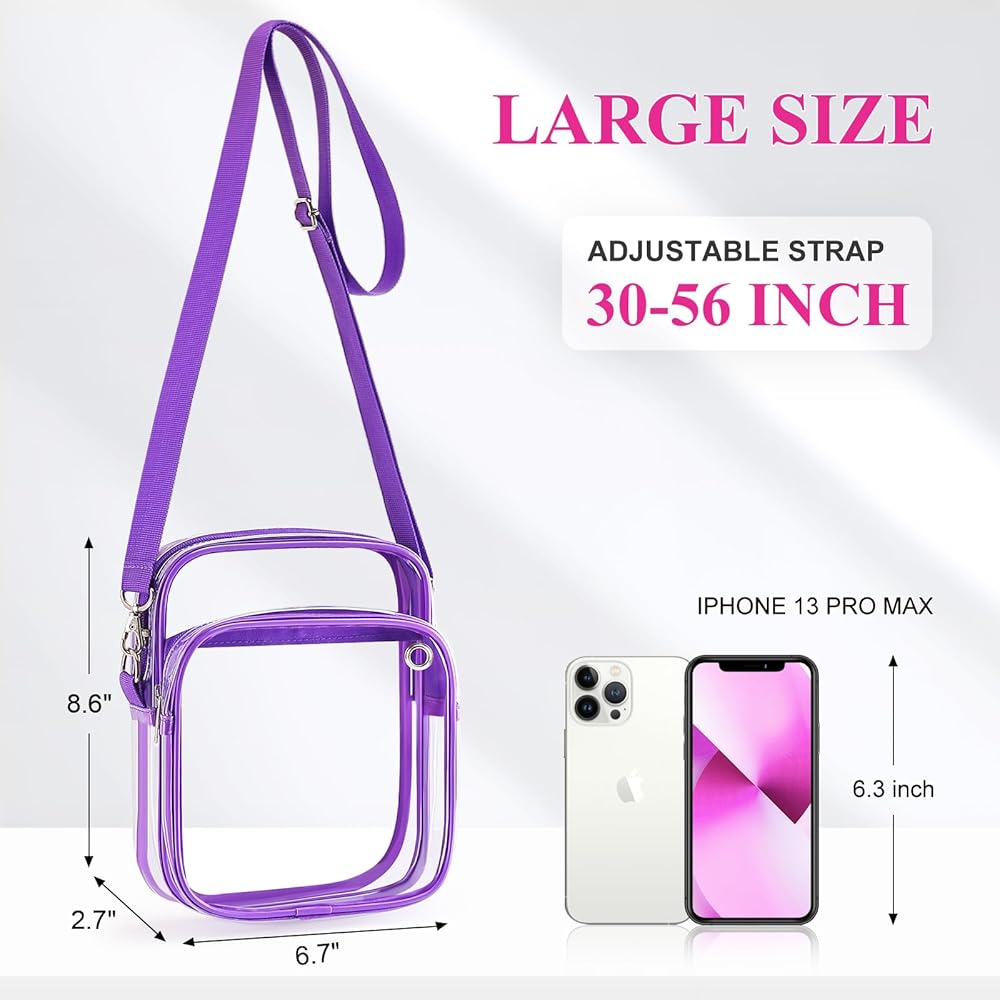 LARGE CAPACITY - Dimension: 6.7"L x 2.7"W x 8.6"H. Clear messenger bag designed for storing your cell phone, credit card, keys and snacks other essentials when traveling, doing workout, cycling, or going to amusement park. The front pocket has a headphone jack