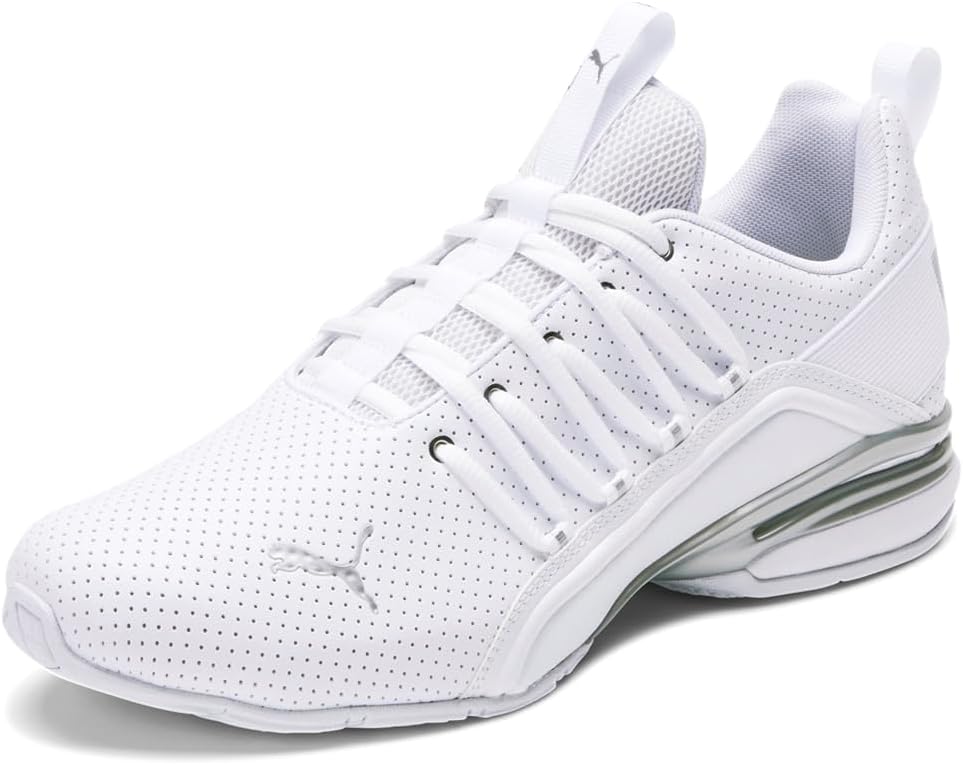 The Axelion incorporates bold PUMA logo around the heel of the gore strap, laces extend further down the sides of your foot for a supportive fit, and a mesh two tone heathered knit material. The Tpu shank provides support and motion control through the heel and midfoot. Rubber outsole for durability and optimal traction.