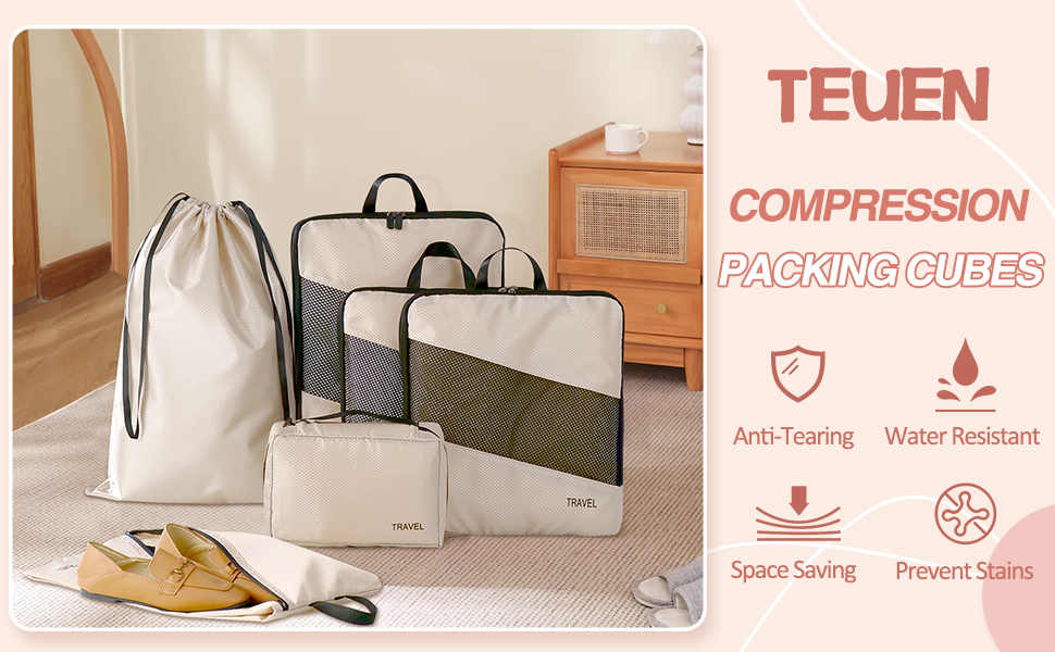 【SPACE SAVING】 Our packing cubes for suitcases have compression function, zip up the extra zipper on the outside helps to keep the items compact and maximize the luggage space, easy to get double capacity, so that more items can be placed in the limited space, not to worry about not being able to fit the luggage.