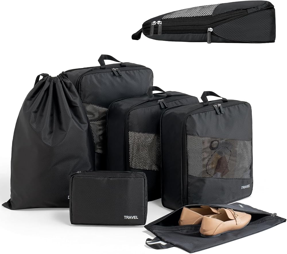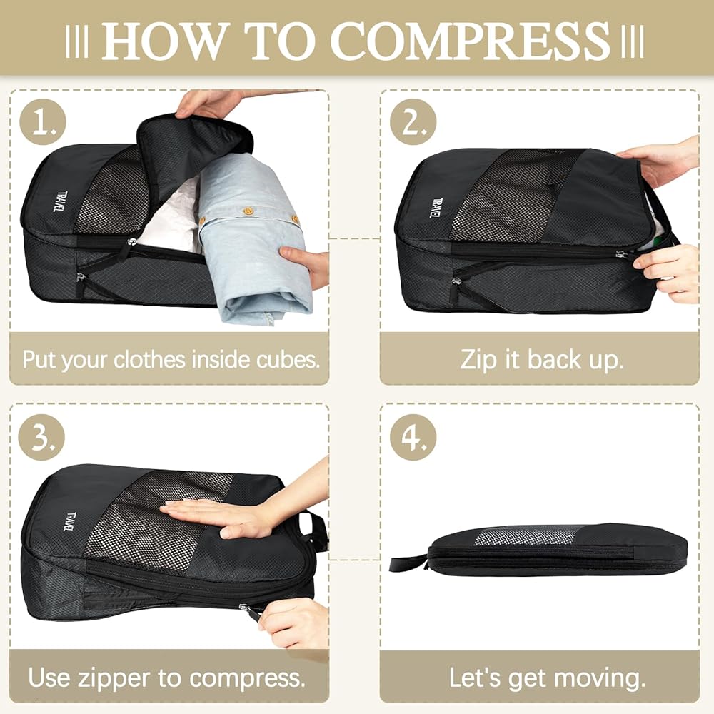 【ORGANIZE YOUR LUGGAGE】Our compression packing cubes make it easier to keep items organized and quickly found in your luggage, it also prevents clothing from wrinkling and getting dirty, great for separating and organizing items while traveling, makes packing/unpacking easy simple and fast.