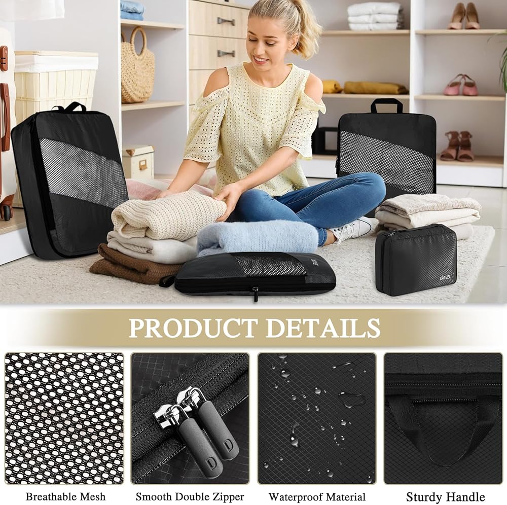 6 Set Compression Packing Cubes for Suitcases, Expandable Large Capacity Luggage Organizer Bags Set for Travel Accessories Travel Essentials Waterproof Durable Lightweight Travel Cubes