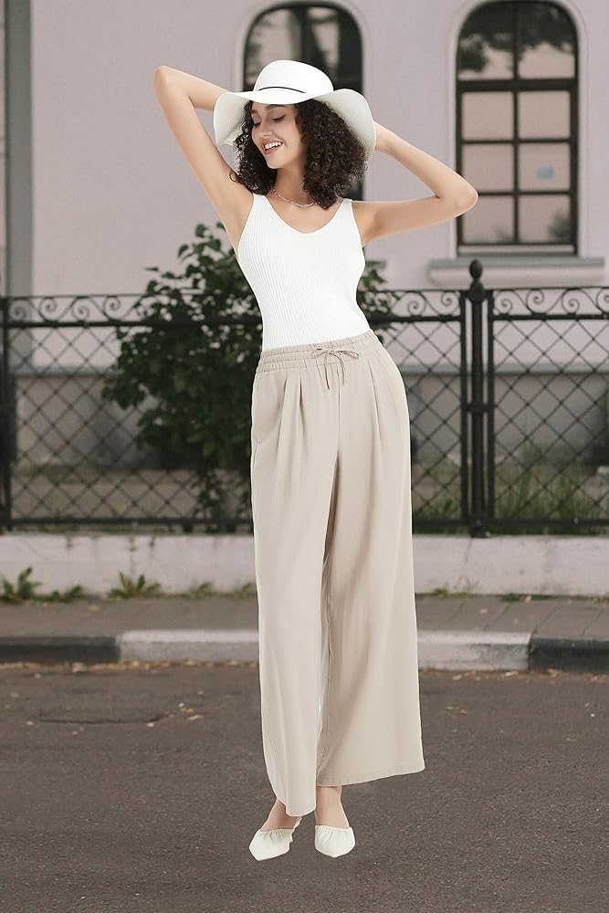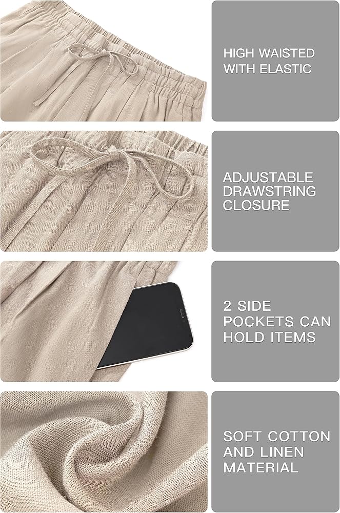❤FASHION LEISURE STYLE - wide leg, loose fit, you can easily to pair with your tank tops, tops, T-shirts, shirts, sweatshirts, sneakers or heels. Cotton linen material more close to the nature.