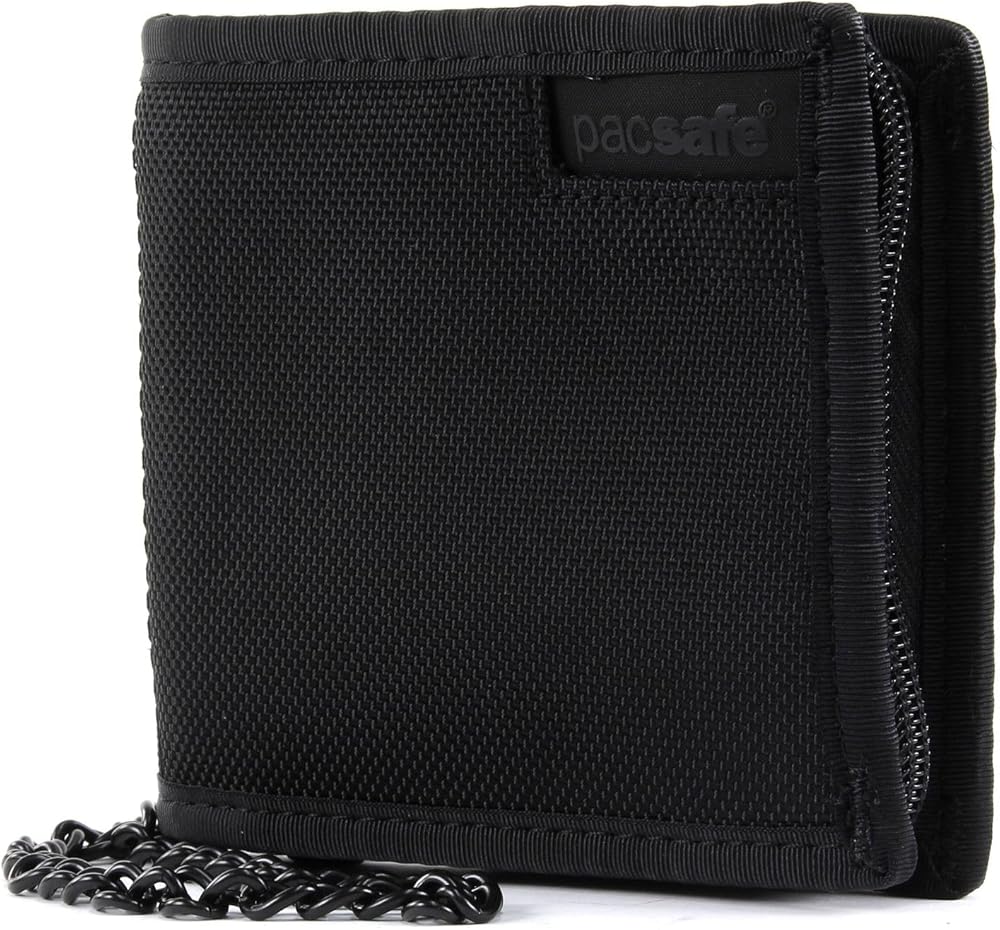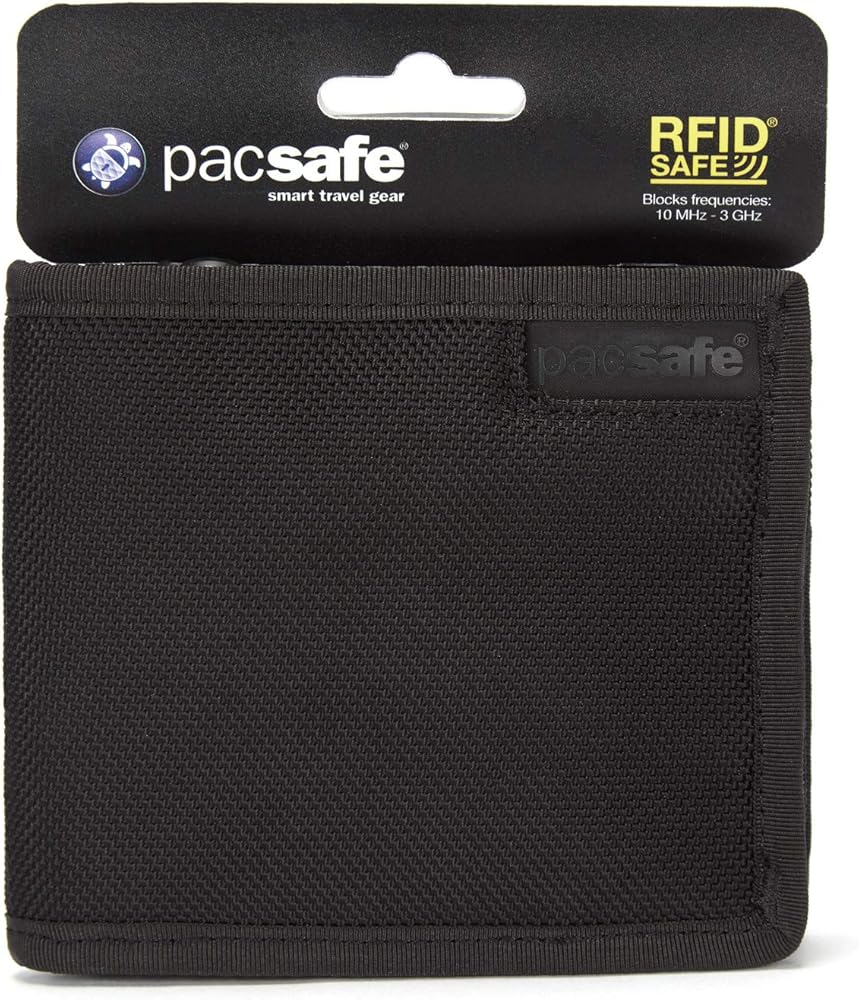 محفظة سفر سوداء ثنائية الطي من Pacsafe Rfidsafe Z100 Rfid Blocking، باللون الأسود