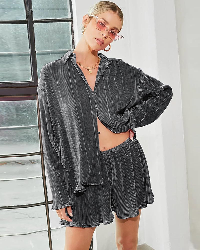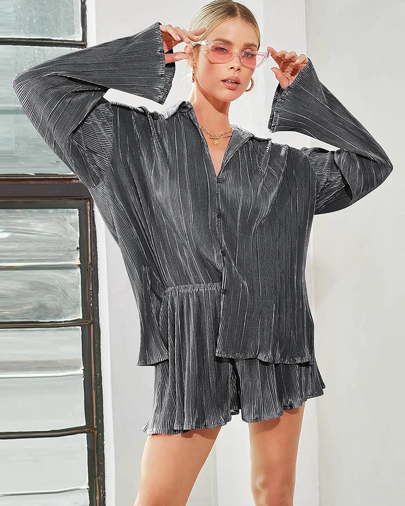 Easy Match:This Women summer cute 2 piece outfits pants Sets can easily match your hats, hand bags and fashion items.Ideal as a a birthday, holiday gift to friends. Pleated set, lounge sets for women, 70s outfits for women.