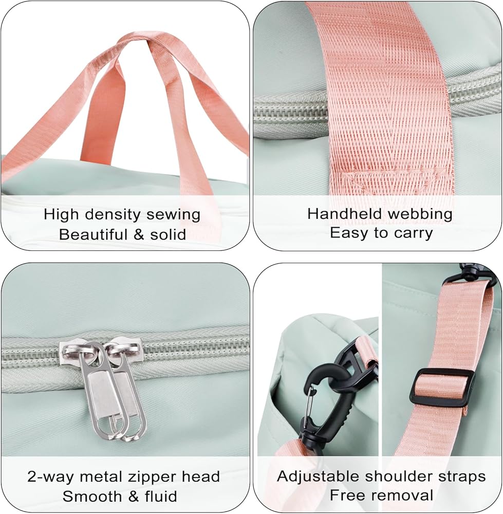 💖【Lightweight Gym Bag】-- The sport gym bag is made of waterproof and tear-resistant Oxford cloth material, lightweight and durable, with good wear resistance, anti-wrinkle, easy to scrub and breathable. At the same time portable travel bag has a comfortable handles, the bag body stitching neat and delicate, with upgraded high-quality sturdy metal zipper, so that the travel bag open and close more easily and smoothly. Will be an ideal travel portable tote bag.