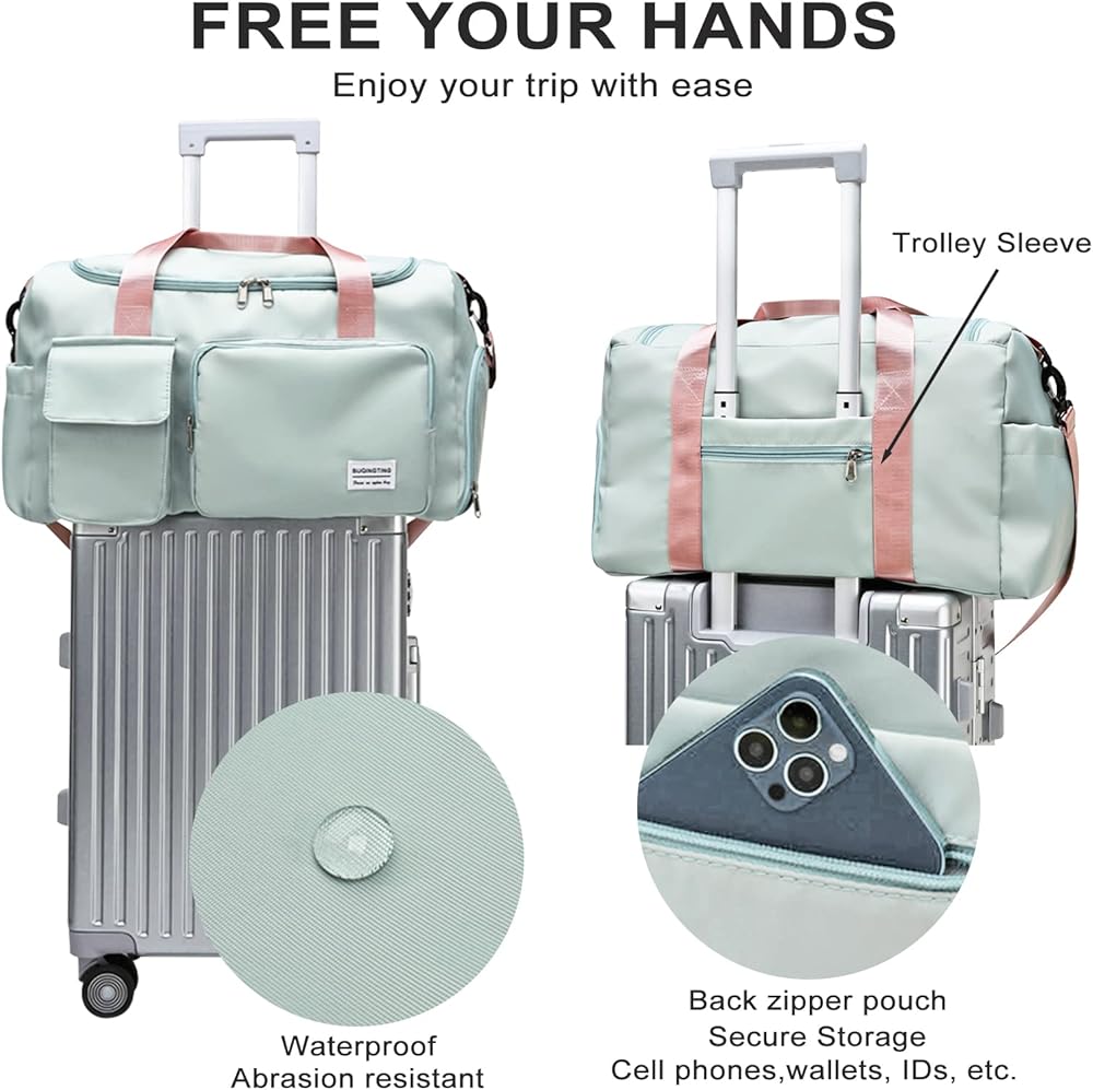 💖【Easy to Carry】This fashionable gym bag is not only hand-carryable, it also comes with an adjustable and detachable shoulder strap that can be adjusted up to 47.2in/120cm, making it more comfortable for you to carry. It is the best choice as a weekend/overnight bag. Plus, the travel tote with trolley sleeve slides over the handle of the rolling luggage, making it perfect for Airline travel.