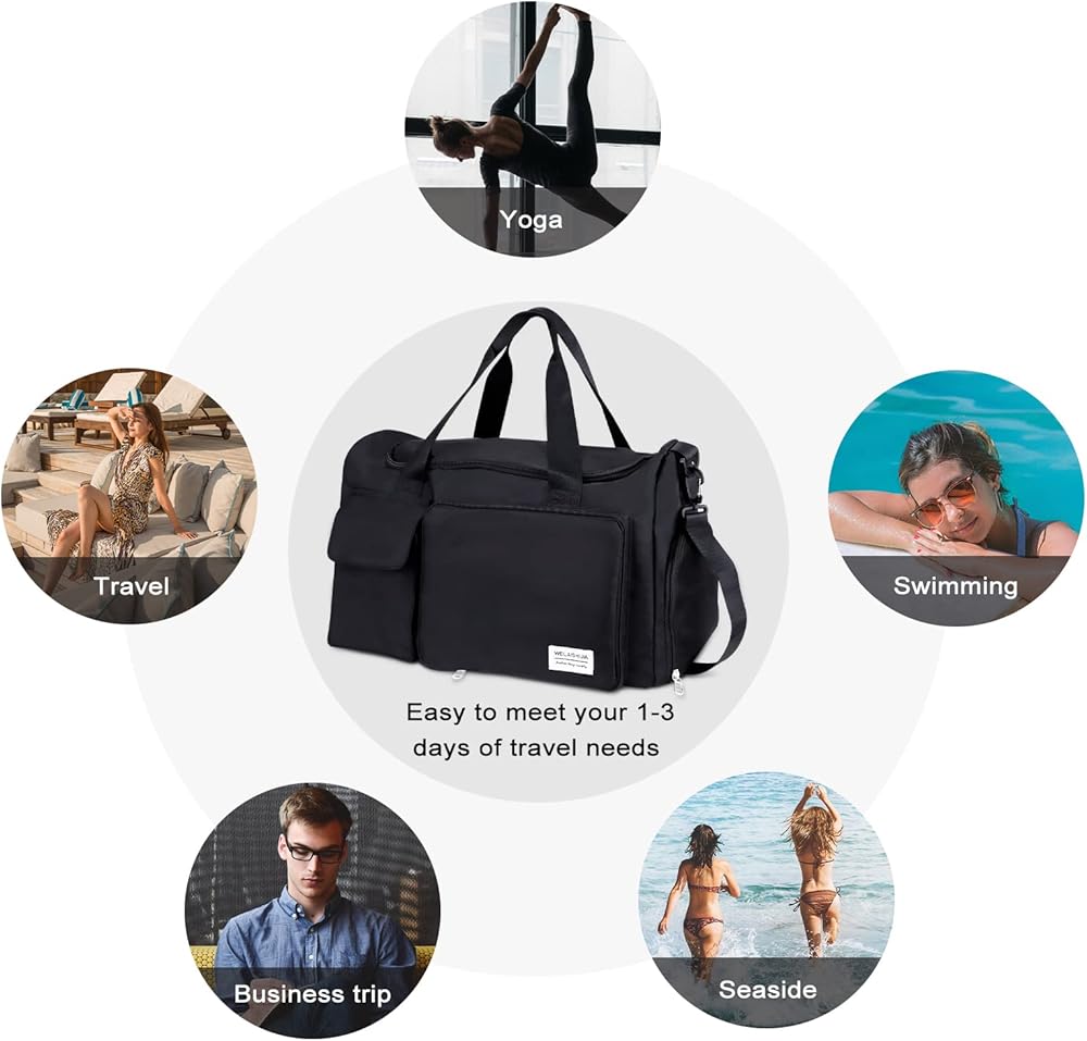 💖【Multipurpose Carry On Bag】 -- This workout bag can easily meet 3-5 days of short trips, it is the perfect reliable companion for men and women working out, sports, travel, weekends, shopping, hiking and camping. We also offer a clear cosmetic bag as a gift, you can use it to carry toiletries, cosmetics and more, keeping your small items clean and tidy. Stylish travel duffel bags, perfect for carrying your personal items when you travel.