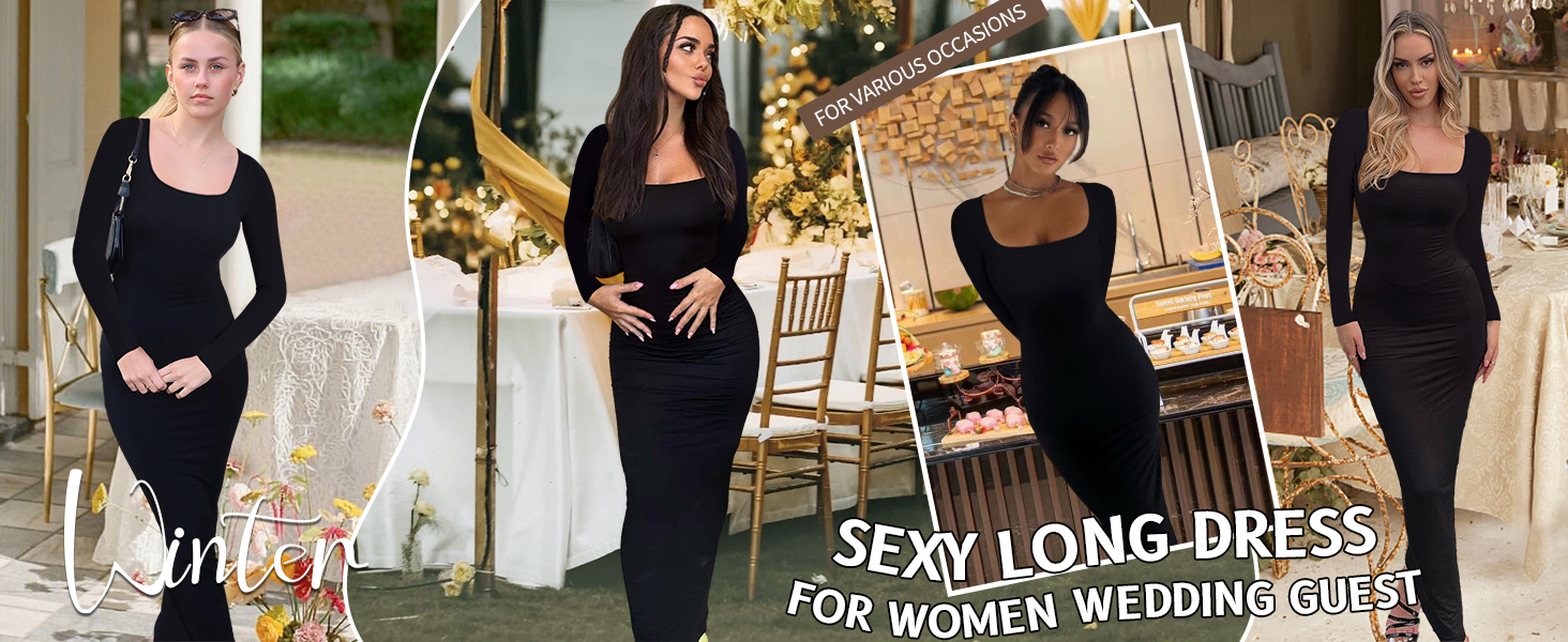 【Design】:This dress features a long sleeve, square neck, maxi length, mermaid silhouette, and ribbed texture, which perfectly showcases your beautiful figure and skin glow. The fishtail hemline further enhances the elegance of the dress.