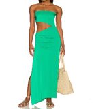 Fashionable design: Stylish solid color design, casual off-the-shoulder and hollow high waist style, simple but wild, the skinny slit dress make you more chic and elegant.