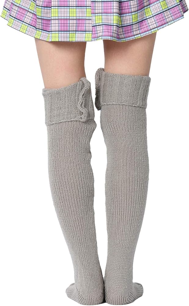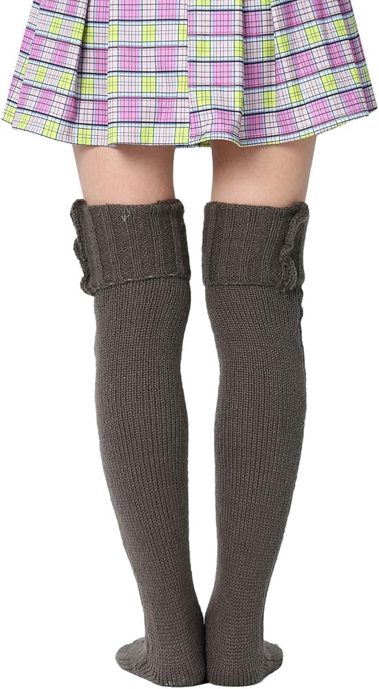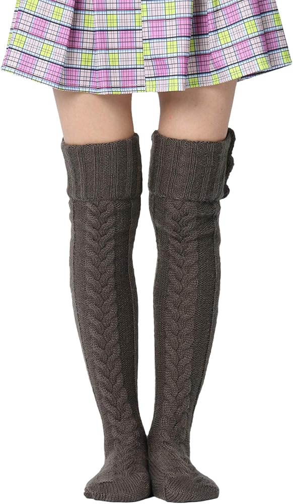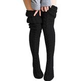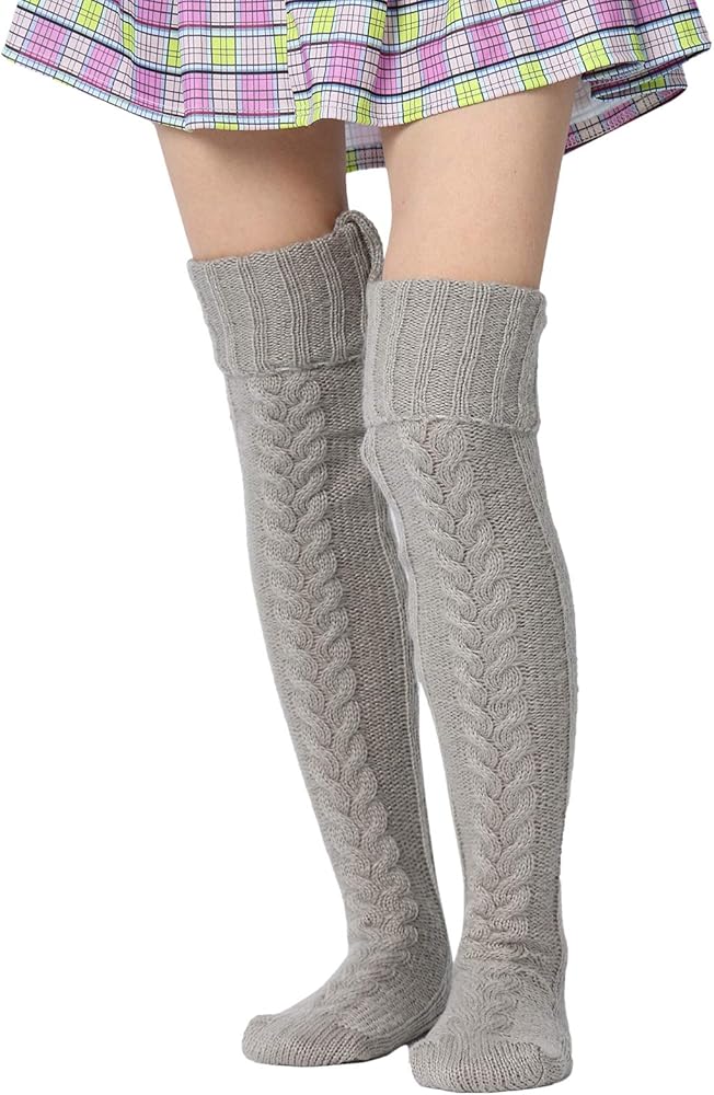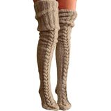 Women Wool Thigh High Stocking, Twist Knit Solid Color Fluffy Over Keen Socks, Winter Warm Casual Long Leggings
