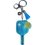 Handmade Cushiony Soft Bling Pickleball Key Chain, Sparkly Women's Car Key Accessories, Blue Pickleball Accessories for Women and Girls, Decorative Crystal Pickleball Racket Bag Charm