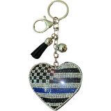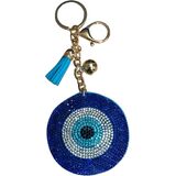 Front Side Flashy Bling Blue Crystal Stones and Backside Soft Velvet Material, Silver Key Rings for Keychains