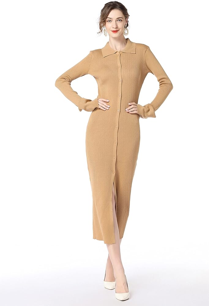slim fit bodycon sweater dress long button sweater dress with ankle length 53.14"