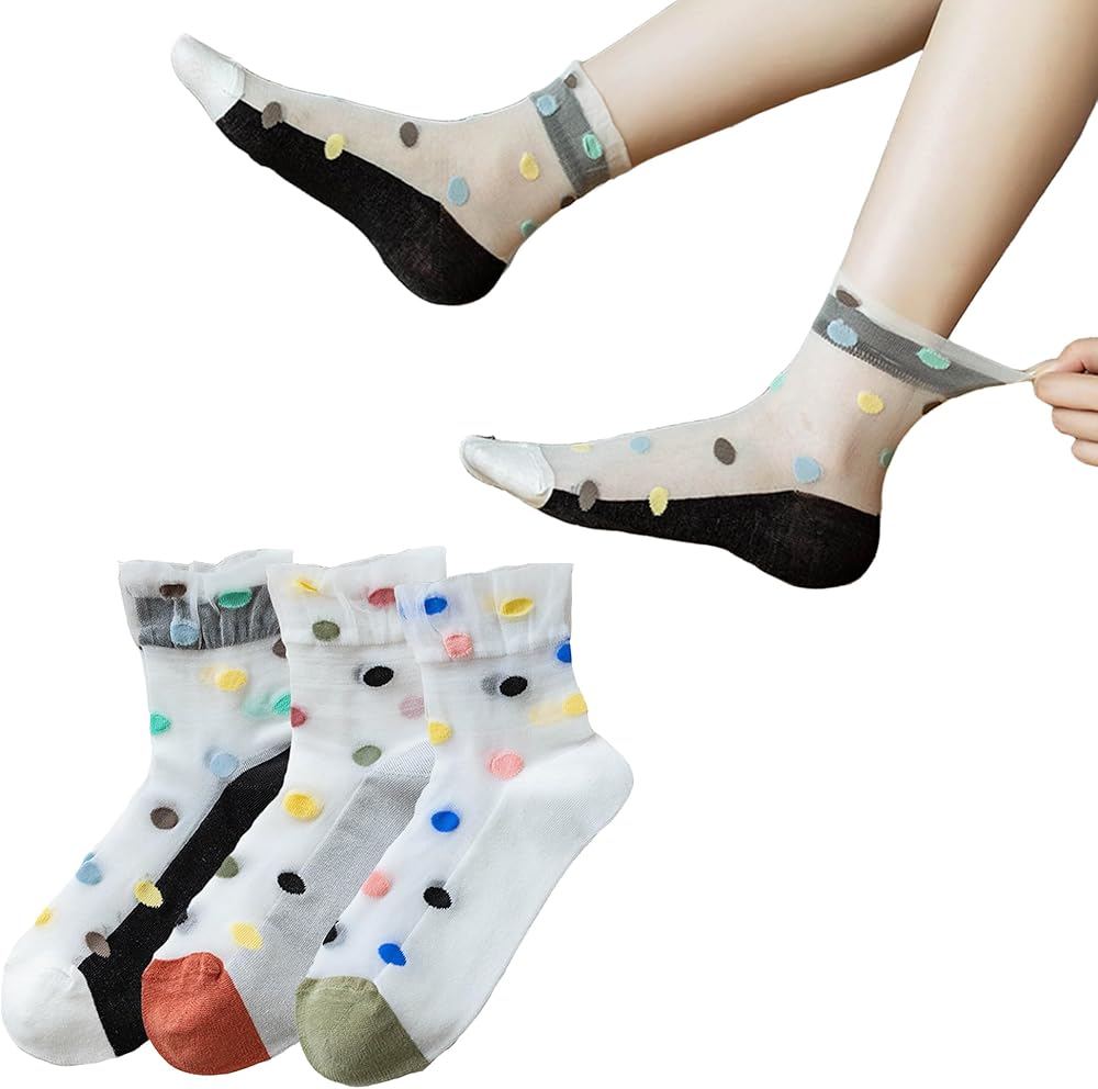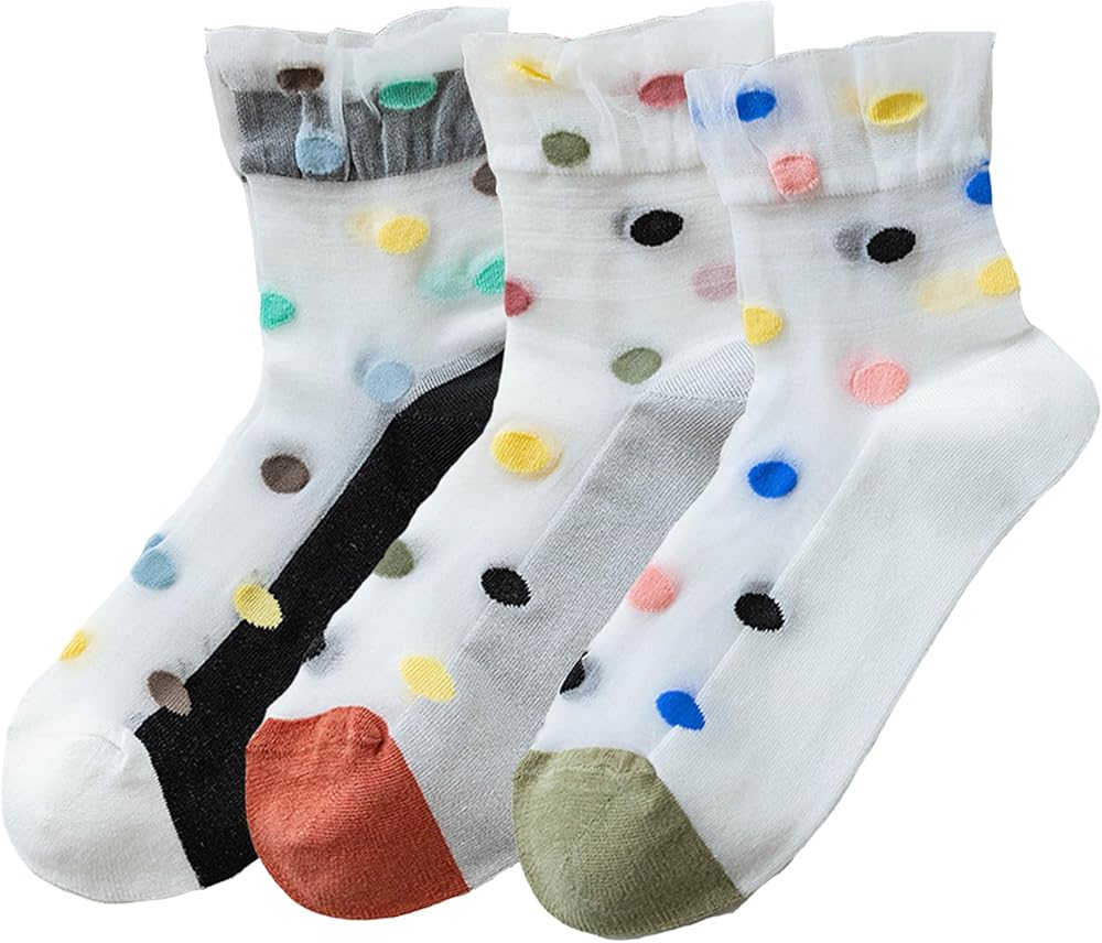 【Size】One Size fits most, the transparent novelty sheer mesh crew socks fit for US teen girls women shoe size 5-8. Sock length 24cm, tube length 17cm. Each set contains a variety of colors and different patterns.