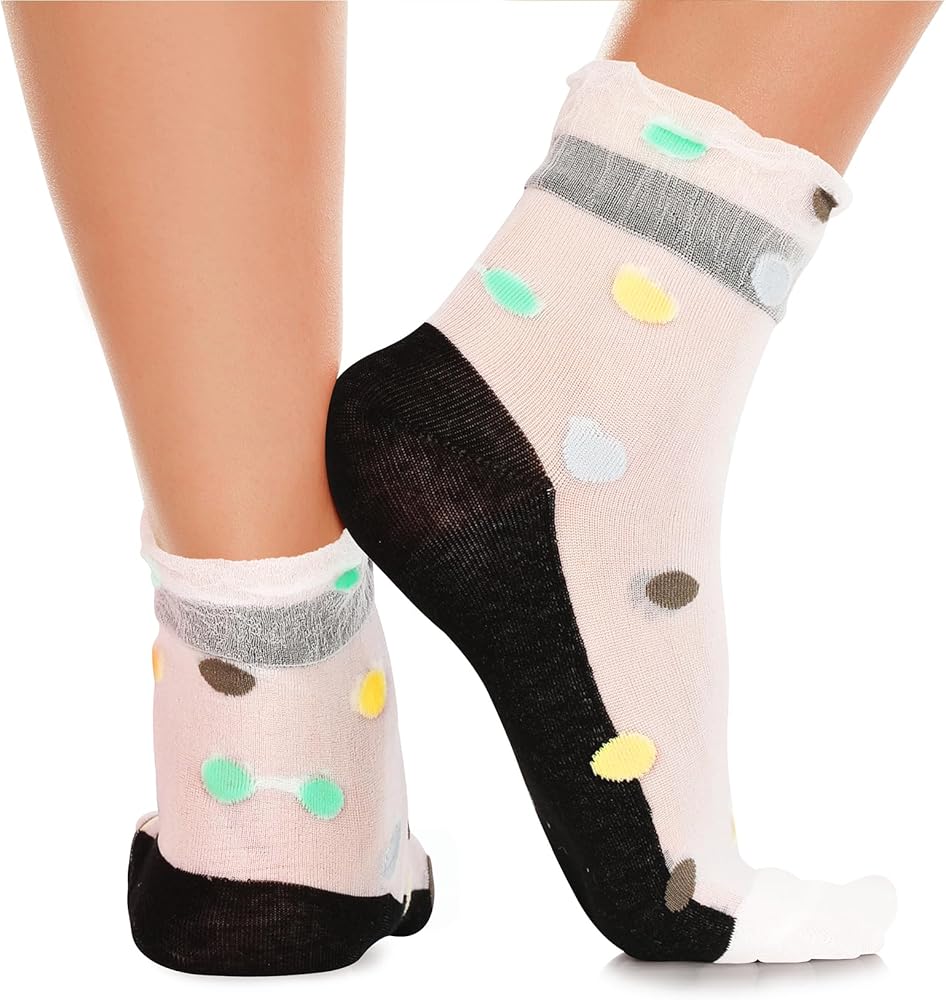 【Breathable Material】 50% nylon,40% polyester,10% cotton. These silk lace see through socks are comfortable, soft, stretchy, breathable and lightweight. The toes and heels are durable cotton fabric and they reach a comfortable height above ankle. Our socks are not tight around the ankles yet are non-slipping. Enforced cotton heel and toes, make socks durable and last long.