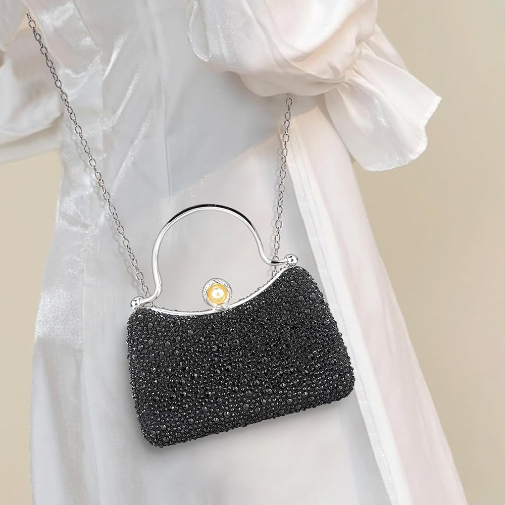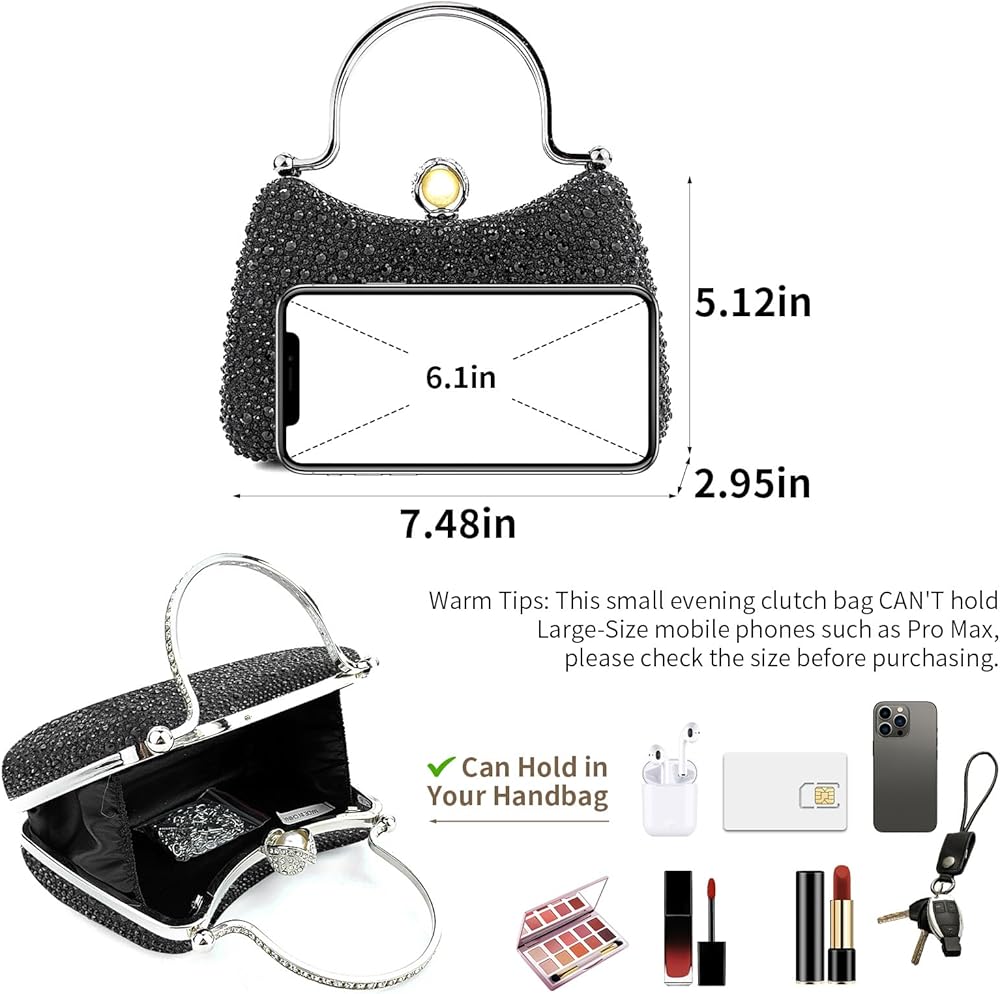 【Handle & Chain】 Featured with diamond top-handle and detachable long chain, Comeon small silver wedding prom purese for women can be used as a handbag and crossbody bag, easy to match your clothes in different colors and styles for formal occasions and daily. It looks lovely when you keep the handle and looks more elegant charming when with the long golden chain.