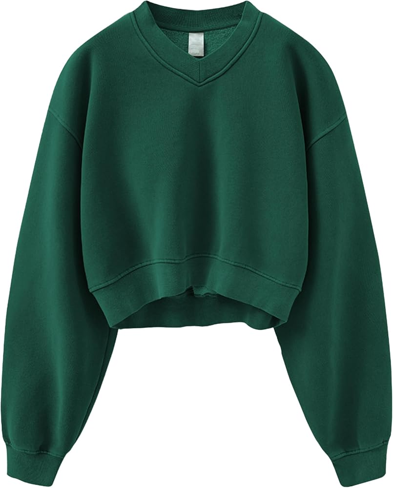 [FEATURES]: Cropped sweatshirts for women, long sleeve crop sweatshirt, fleece sweatshirt crop top, fleece crop jumper, drop shoulder pullover tops, solid basic loose fit sweatshirts, cute v neckline pullover sweatshirt crop top, casual sweatshirt hoodie pullovers shirt.