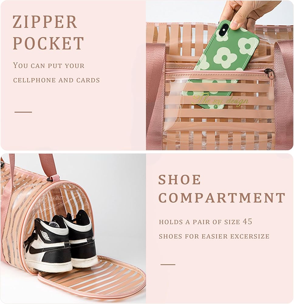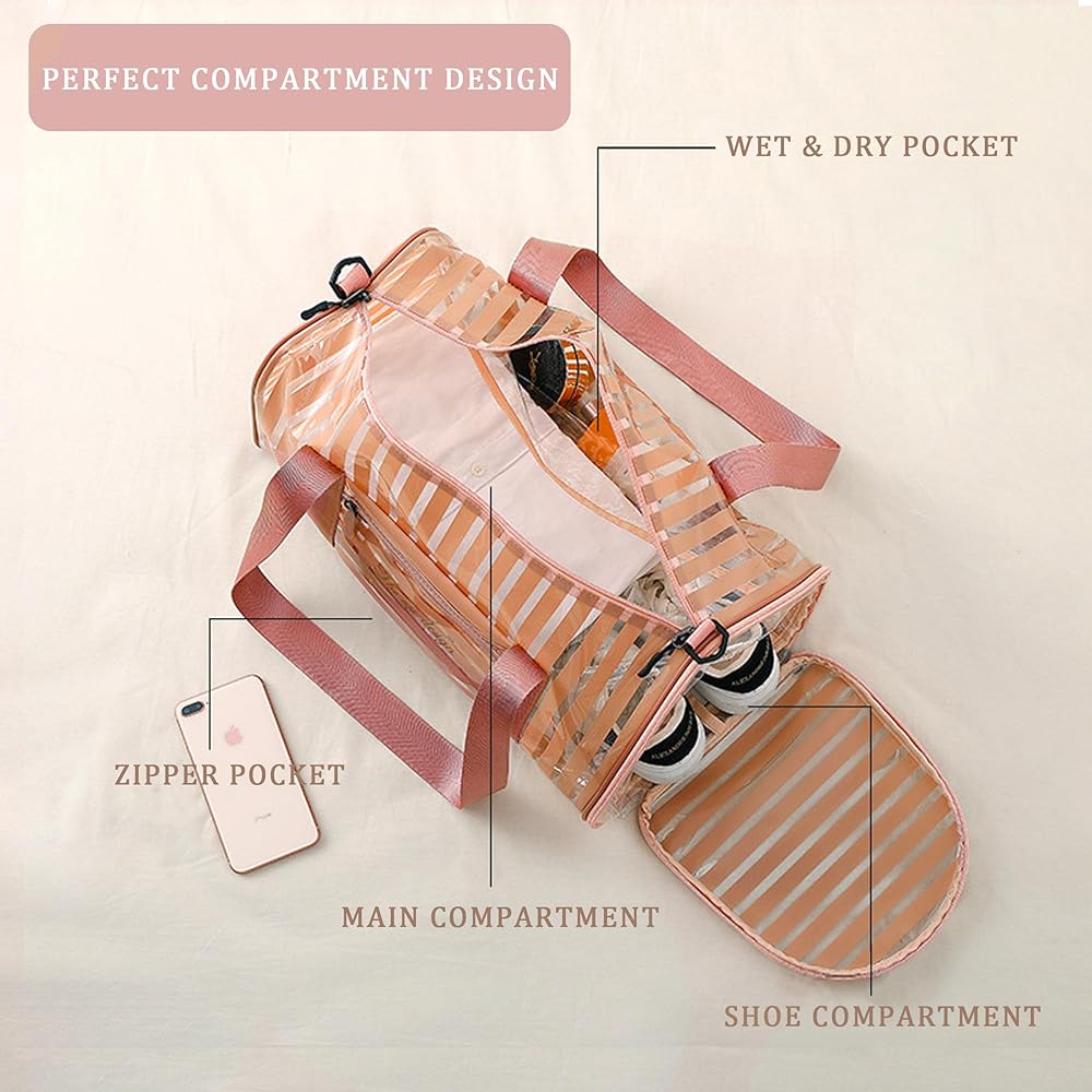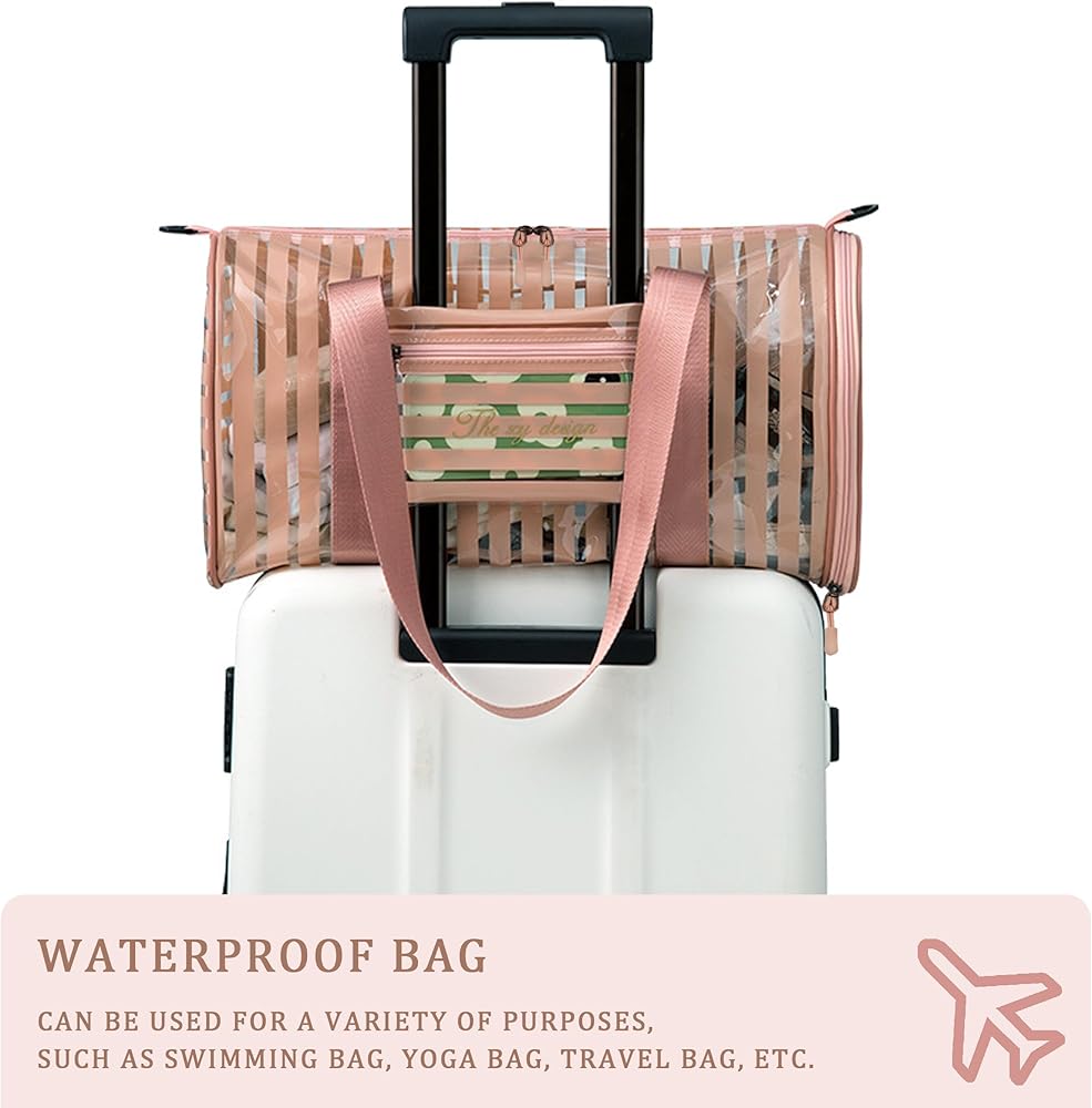 Transparent waterproof material : The travel bag is made of polyvinyl chloride waterproof material, which is comfortable to touch, wearable and durable.