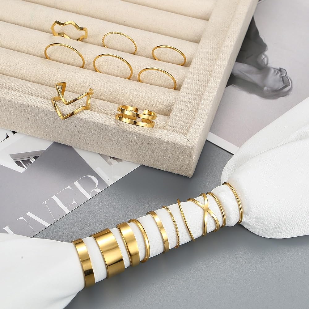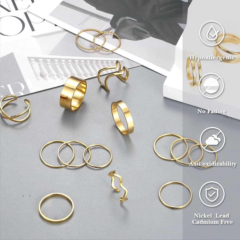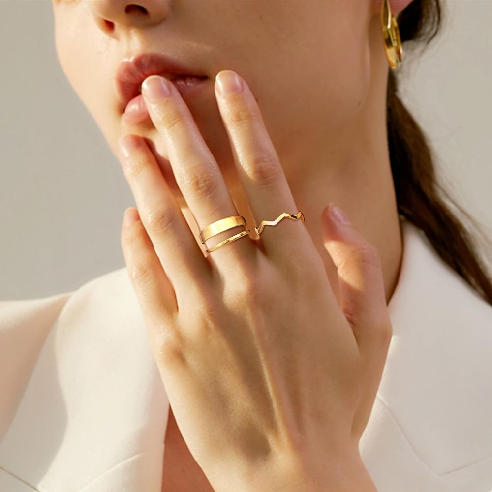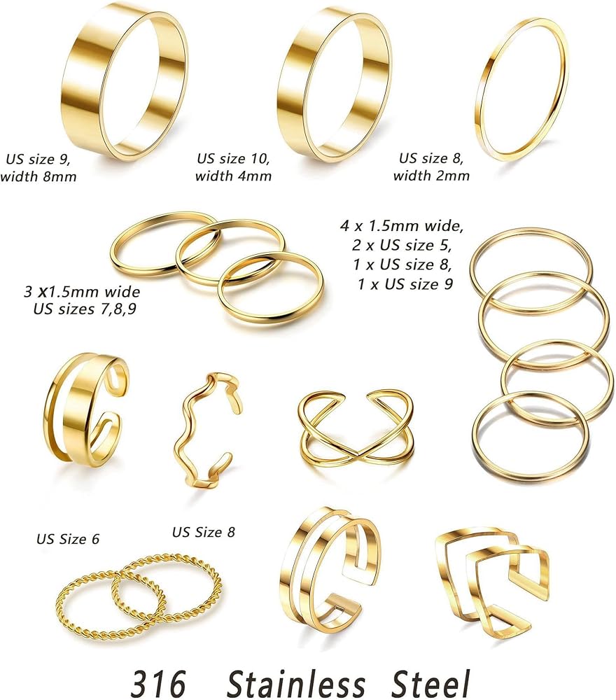 [Size]:The Stacking Rings Are Sized Between 5-10, The Open Rings Are Slightly Adjustable