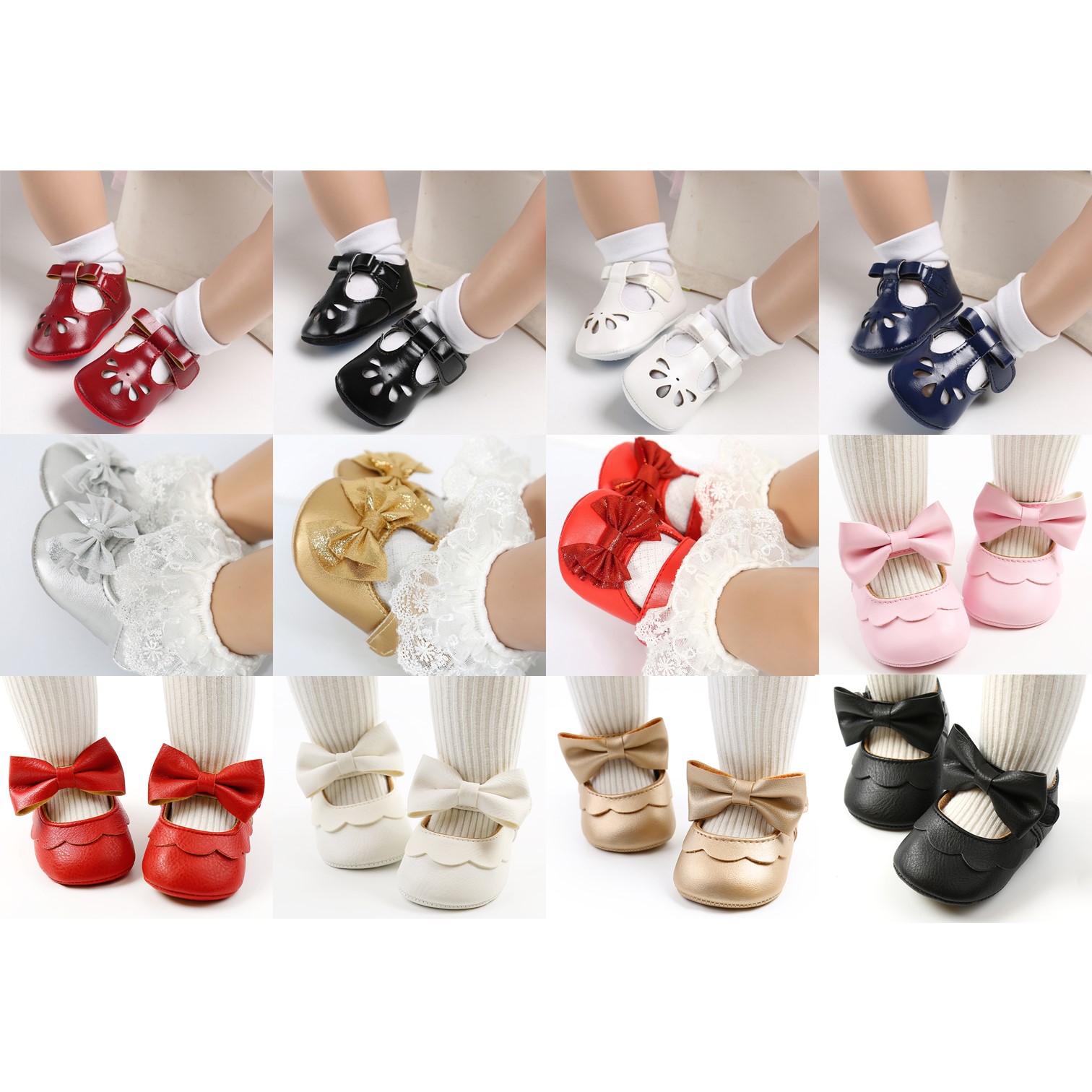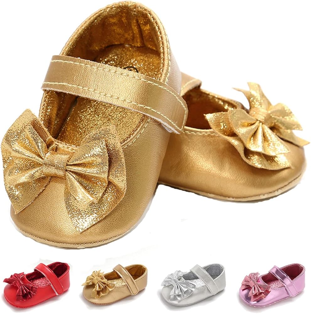لافيجين حذاء ماري جين مسطح للبنات الصغار مع فيونكة ونعل ناعم غير قابل للانزلاق من جلد البولي يوريثين لحديثي الولادة والاطفال الصغار, 0-18 Months Infant