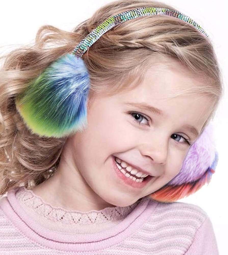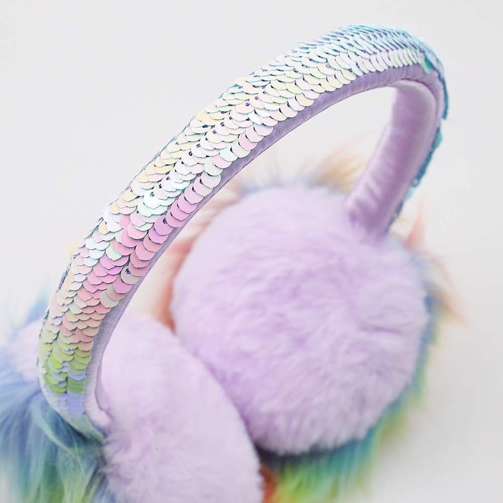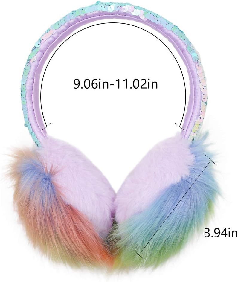 ❀ONE SIZE FIT MOST: Plush earmuffs for 4-15 Years Old girls. The size is adjustable, can fit different size head (also fit womens). Shield the wind from ears without blocking sound, the kids will not get any discomfort. Sequin headband design presents girls amazingly beautiful.