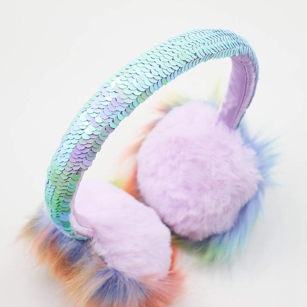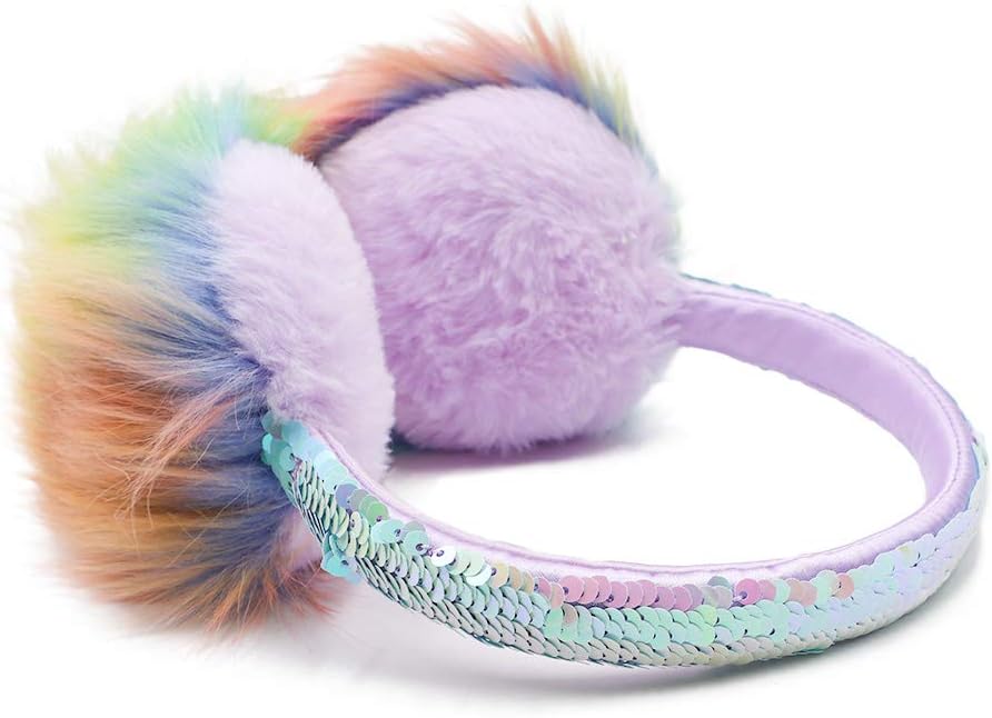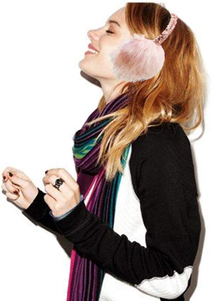 ❀SEQUIN EARMUFFS: Made of a soft high quality faux fur material. Soft & comfy, fluffy & breathable, warm & windproof, protect your ears warm during the cold weather with this cute big pom poms ear warmer.