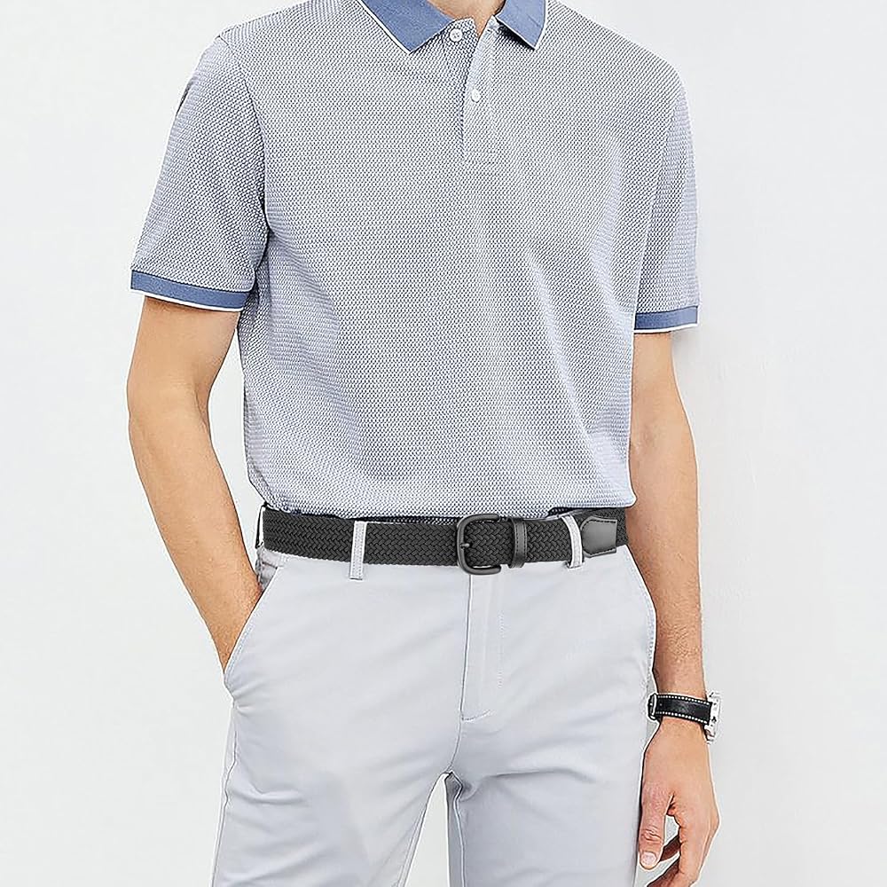 THE LATEST DESIGN: This is new design combination of golf business classic buckle and casual woven belt. Our braided belt is made of 208 roots superlative sky silk. NO HOLE belt!