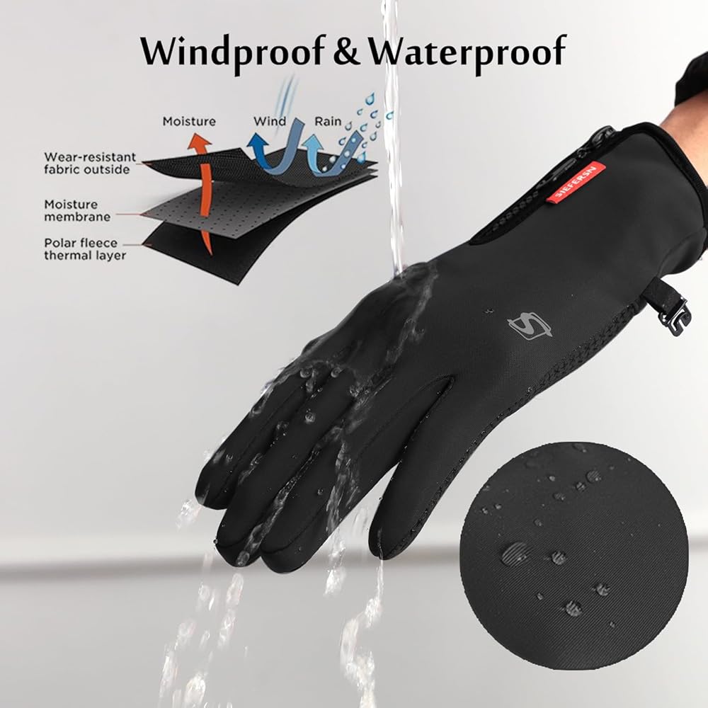 These touchscreen gloves are made of premium fabric, with three layers of thermal fleece, plus windproof and waterproof outer fabric.