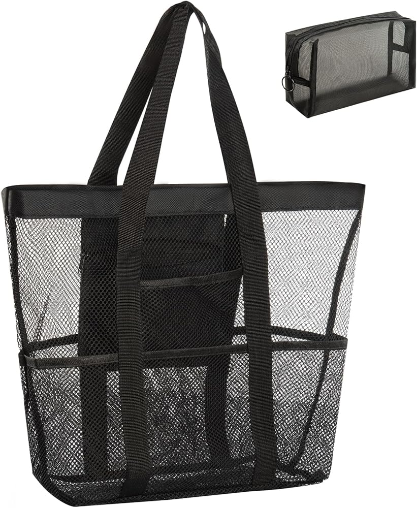 Durable Material: Made from high-quality and durable mesh material, our mesh beach tote bag is designed to withstand wear and tear. It can resist the harsh weather conditions at the beach. The mesh design allows sand to filter out and the breathable fabric keeps the interior dry, preventing any unpleasant odors from wet towels.