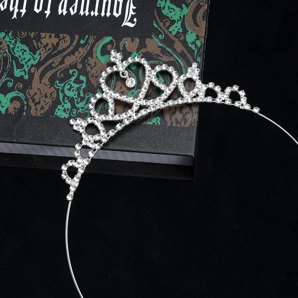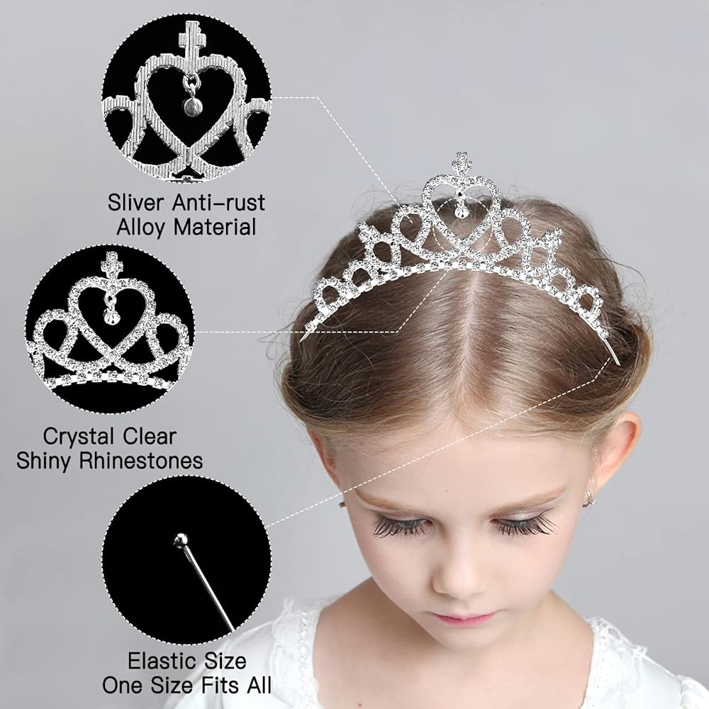 One Size Fit All: The tiara is approx 17cm/6.7inch, crowns approximately 13cm/5.11 inches in diameter. The silver tiara is bendable so it should fit different sized heads, smaller and larger.